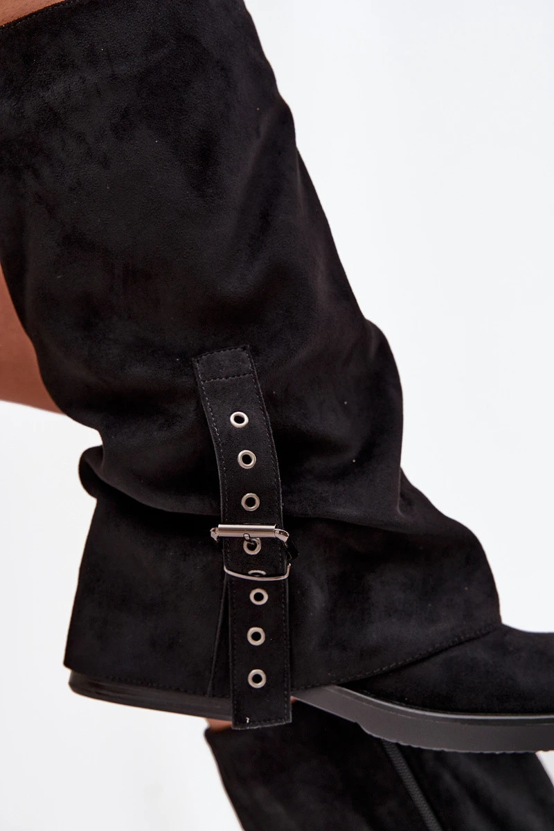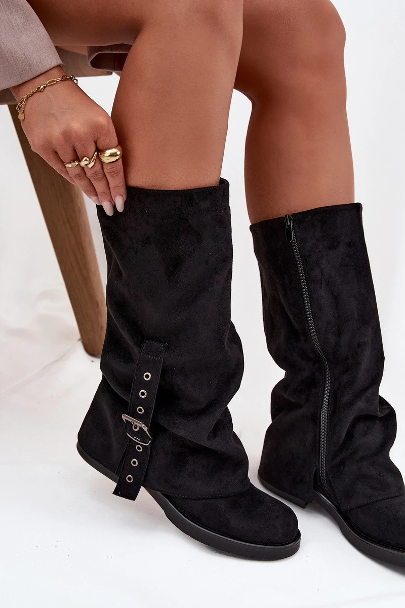 kozačky s vrchní částí a přezkou Černé model 21715441 - Boto