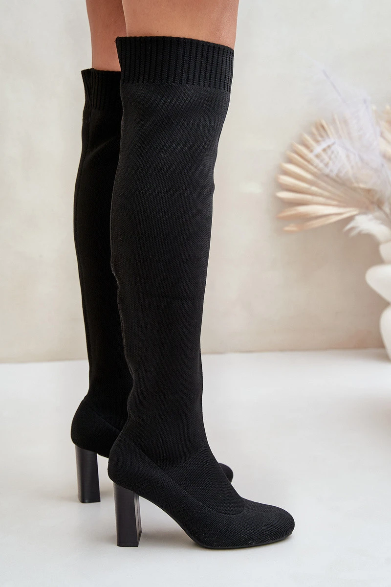 Kozačky Se Školkovou Špicí Nad Koleno Na Podpatku Černé Esanira