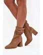 Kozačky z přírodního nubuku vyhřívané na podpatku s mačkáním Zazoo 4216 béžové