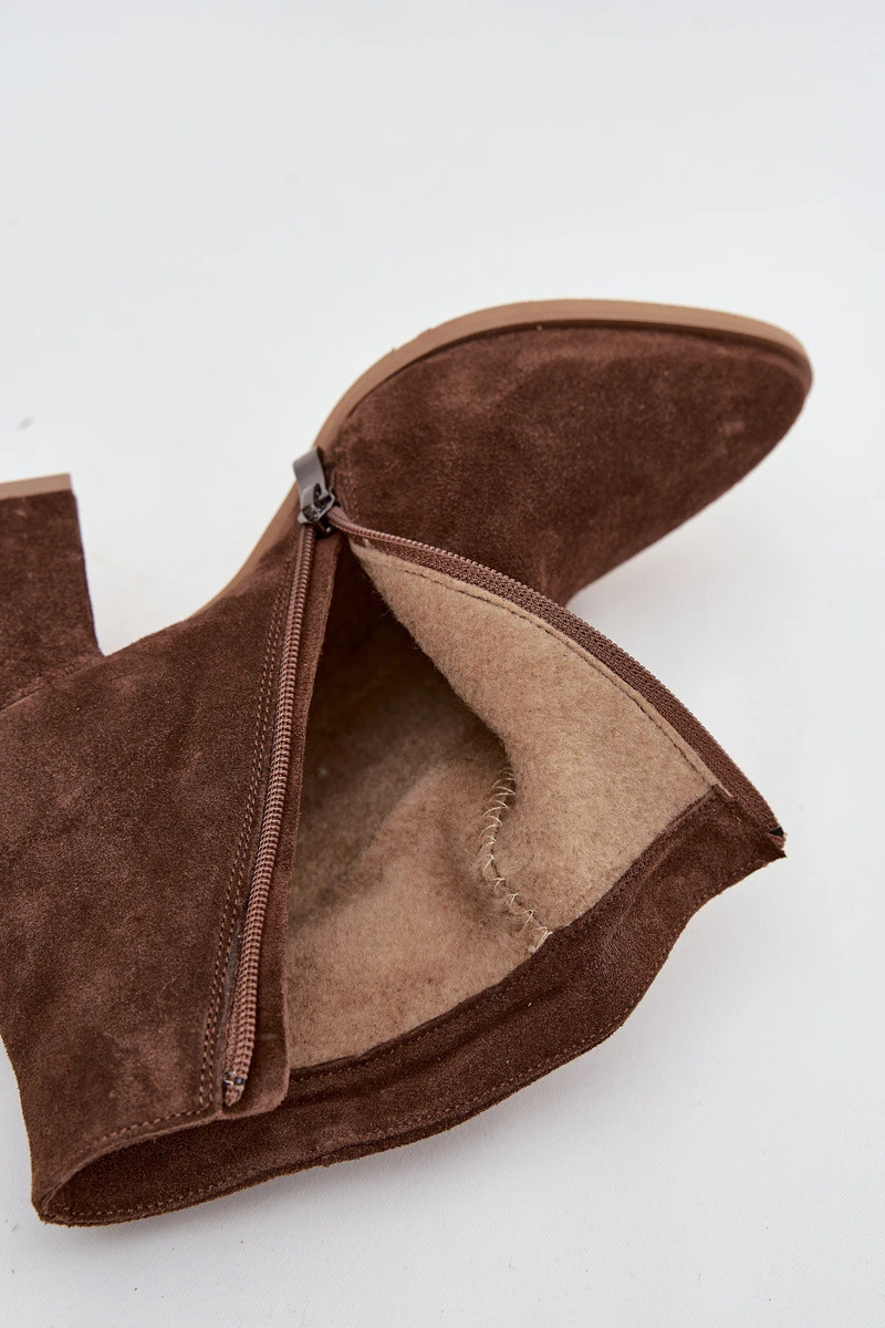 Kozačky z přírodního semiše s vysokým podpatkem vyhřívané hnědé Zazoo 3128