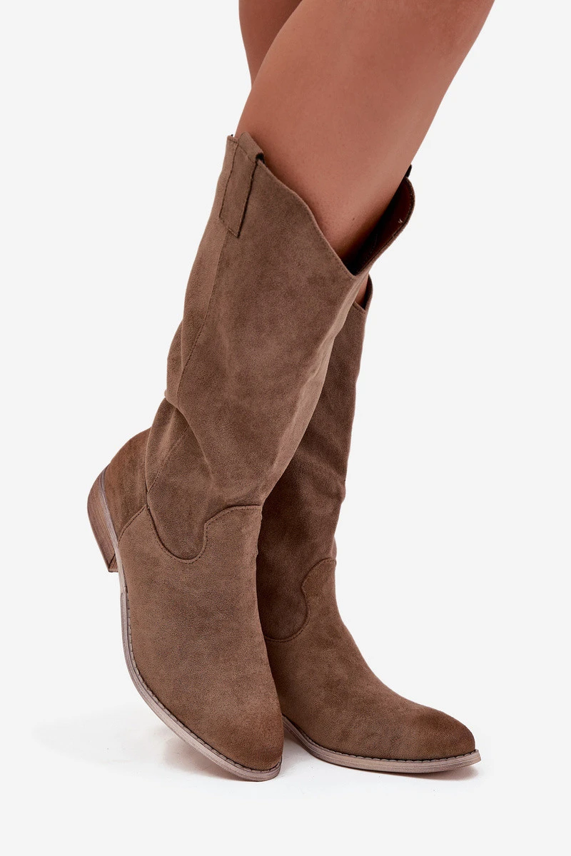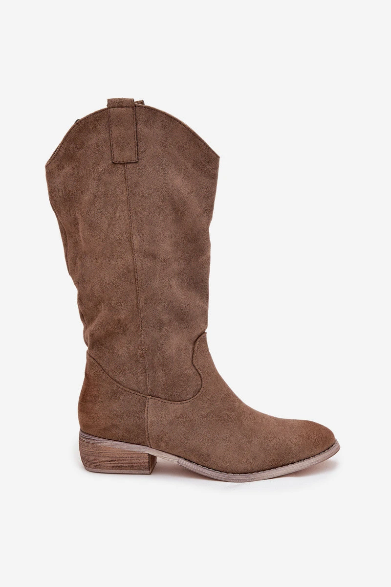 Kozaki Kovbojky Na Nízkém Podpatku Z Eko Semiš Tmavě Béžové Cherrie