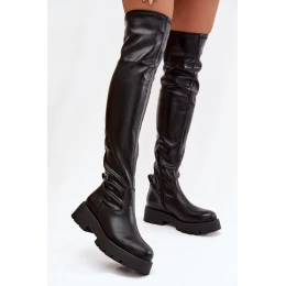 Dámské kozačky s vysokým límcem sahajícím za koleno jsou nápadný model, který krásně zvýrazní nohy. Nazouvací styl doplněný zipem umístěným dole usnadňuje obouvání a poskytuje pohodlné přizpůsobení. Na okraji podrážky jsou drobné zirkony, které dodávají celku jemný, lesklý akcent. Ideální obuv k stylizacím s šaty, sukněmi nebo koženými šortkami — skvělé jak na každý den, tak na výjimečné příležitosti. Při výběru velikosti se řiďte tabulkou velikostí. Při výběru velikosti se řiďte tabulkou velikostí.