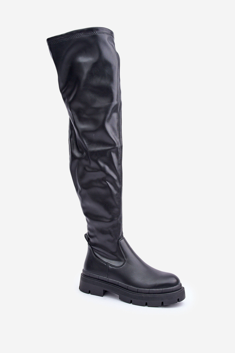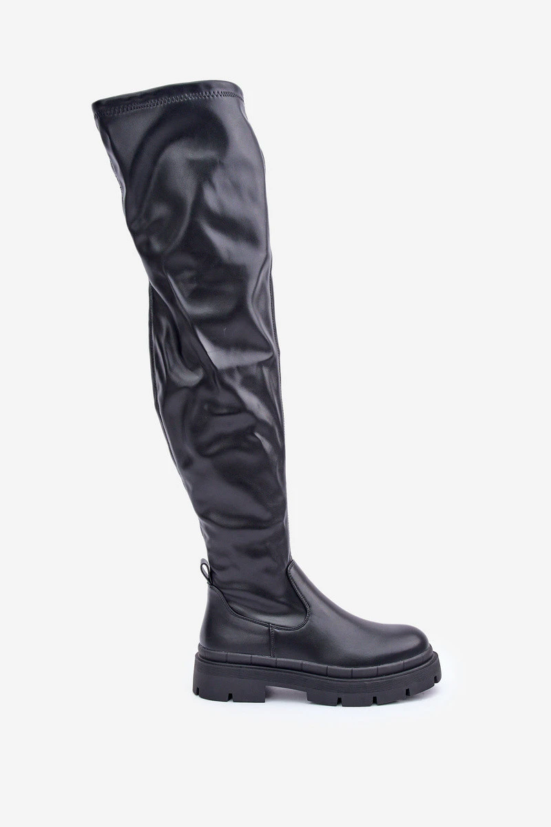 Kozaky Po Kolena Na Plochém Podpatku Černé Feliri