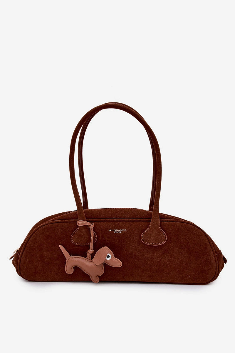 Stylová kabelka typu bageta vyrobená z eko semiše je módní doplněk, který se skvěle hodí k aktuálním trendům. Model je zapínán na zip, což zajišťuje bezpečí uložených věcí. Kabelka má pohodlné držadla, díky nimž se skvěle nosí na rameni a je pohodlná na nošení. Uvnitř jsou dvě praktické kapsy, které usnadňují organizaci drobností. Celý doplněk doplňuje roztomilá přívěsek ve tvaru jezevčíka, který dodává kabelce originální a ženský akcent. Ideální volba pro ženy, které ocení módní vzhled, pohodlí a výjimečné detaily. Rozměry: Šířka - 41 cm Výška - 14 cm Tloušťka - 7,5 cm.