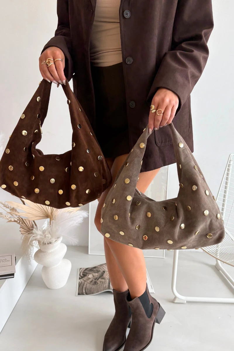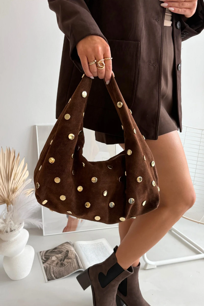 Kožená semišová kabelka s ozdobou hnědá model 21721806 - Boto