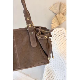 Dámská kabelka vyrobena z přírodního semiše je elegantní a stylový doplněk, který zvýrazní každý outfit. Model vyniká zlatými kováními a ozdobnými pásky s přezkami. moderního charakteru. Kabelka se zapíná na zip a její dvoukomorové uvnitř s praktickými kapsami umožňuje udržet pořádek a pojmout všechny nezbytné drobnosti. Ideální volba pro ženy, které ocení spojení elegance, funkčnosti a nadčasového stylu.