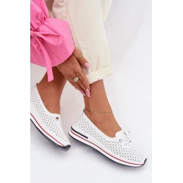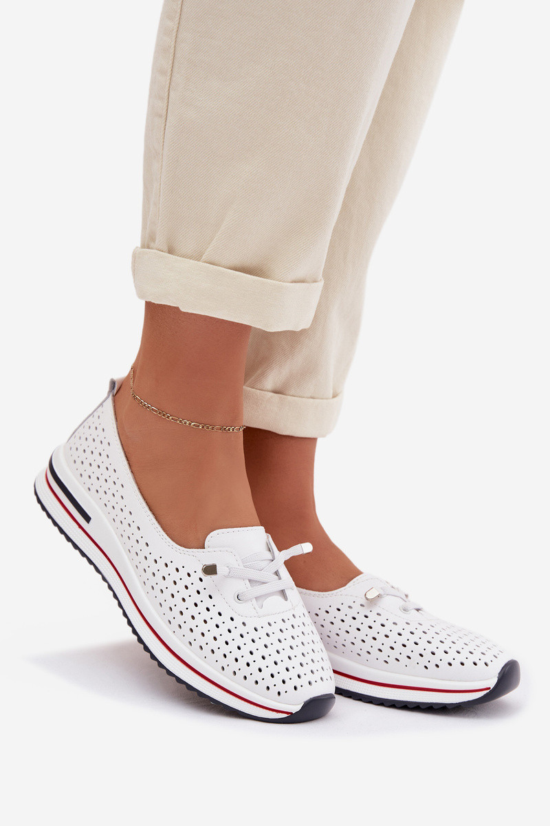 Kožené Ažurové Dámské Polobotky S.Barski LR61-7044 Bílé