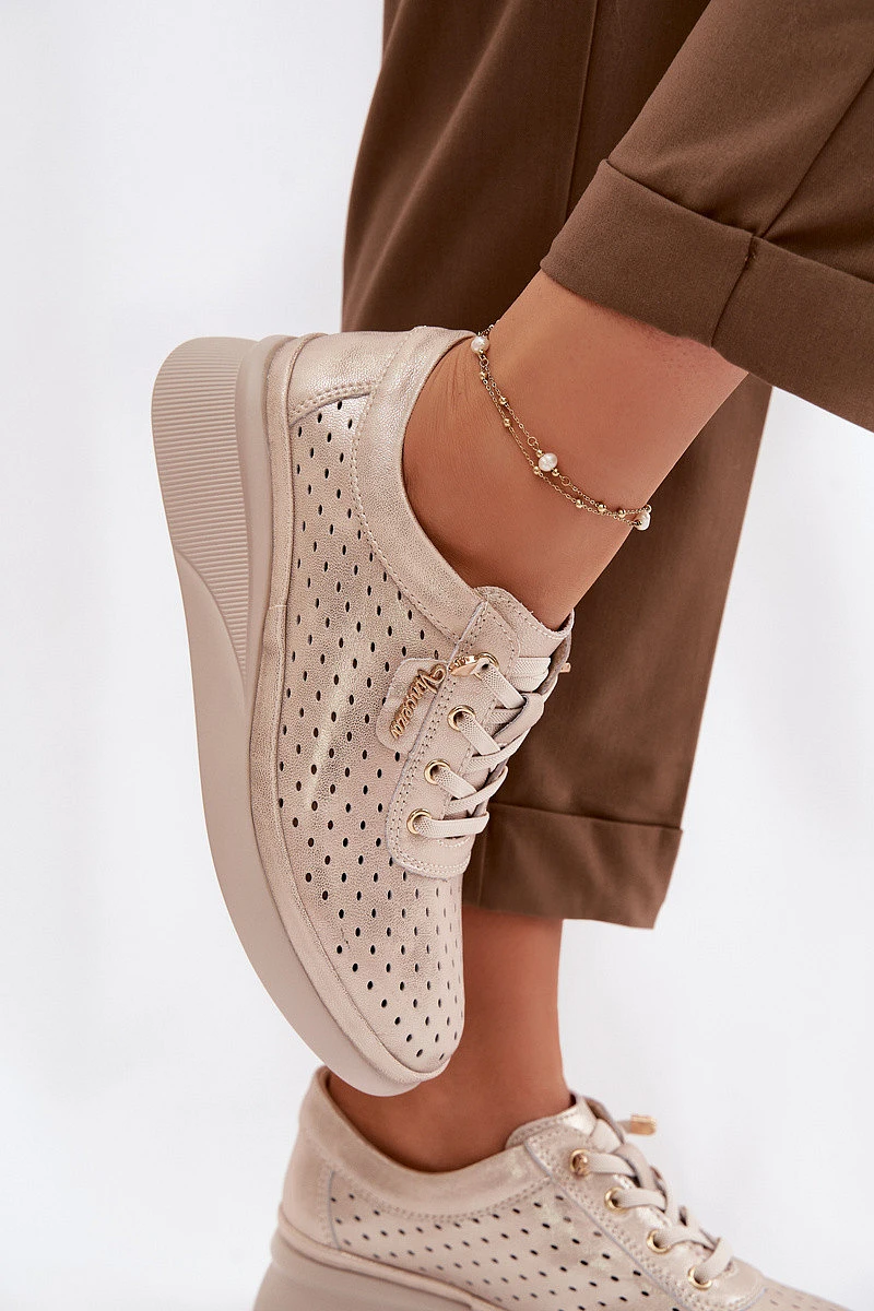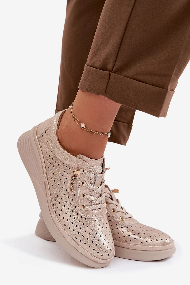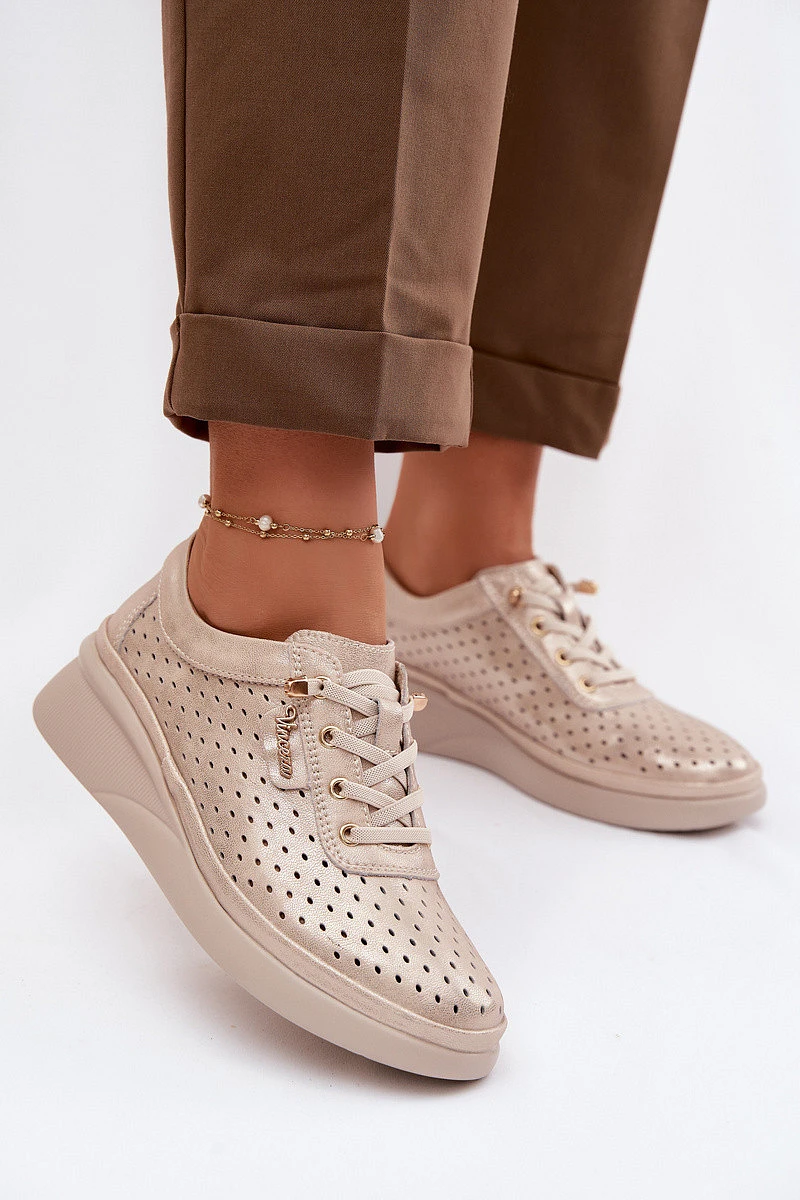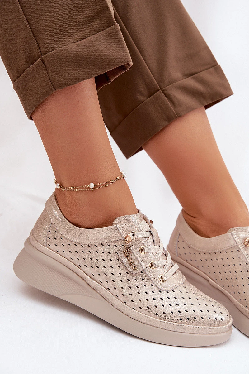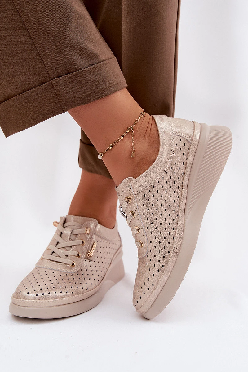 Kožené Ažurové Dámské Polobotky Vinceza 79603 Zlaté