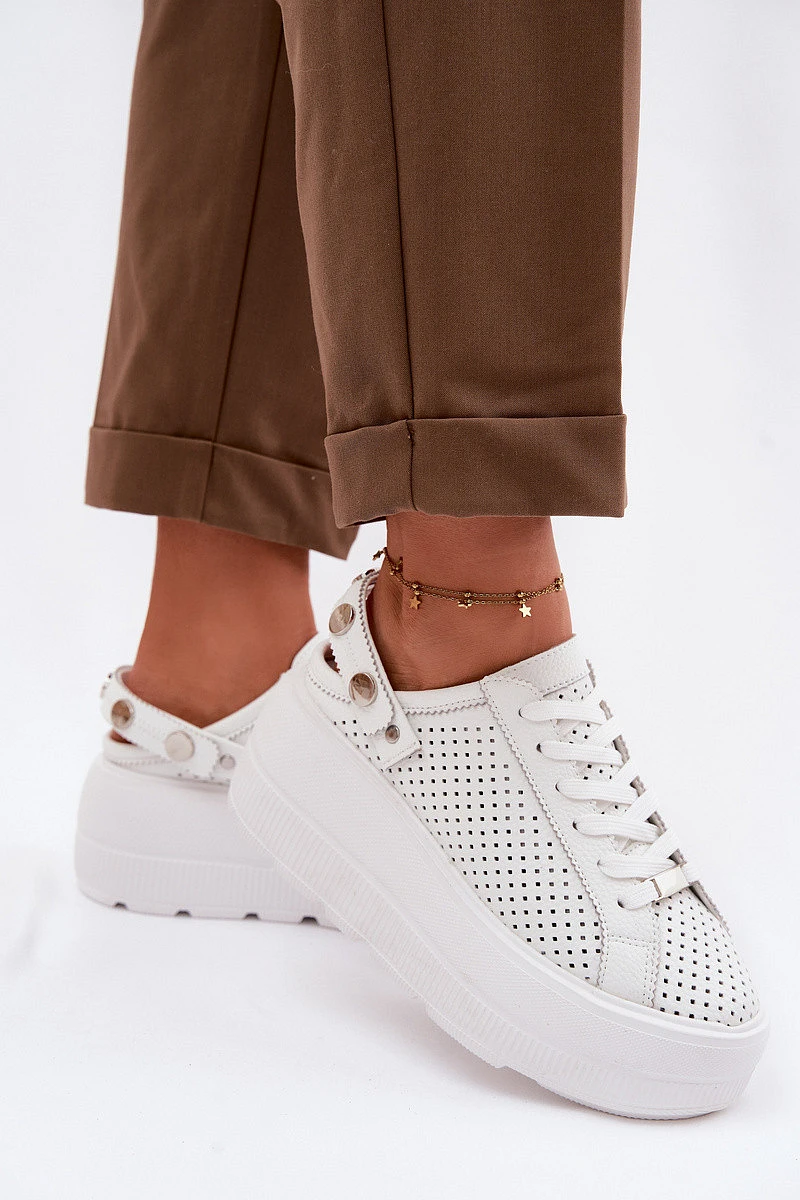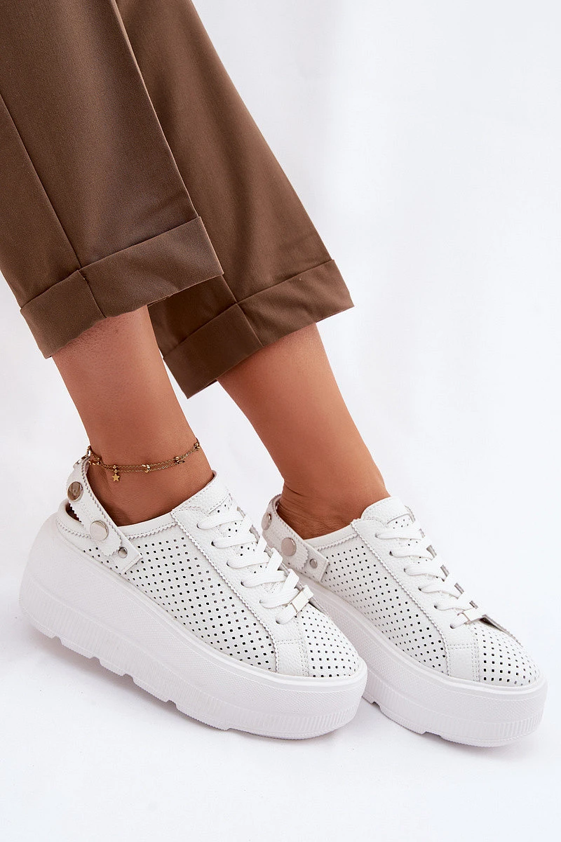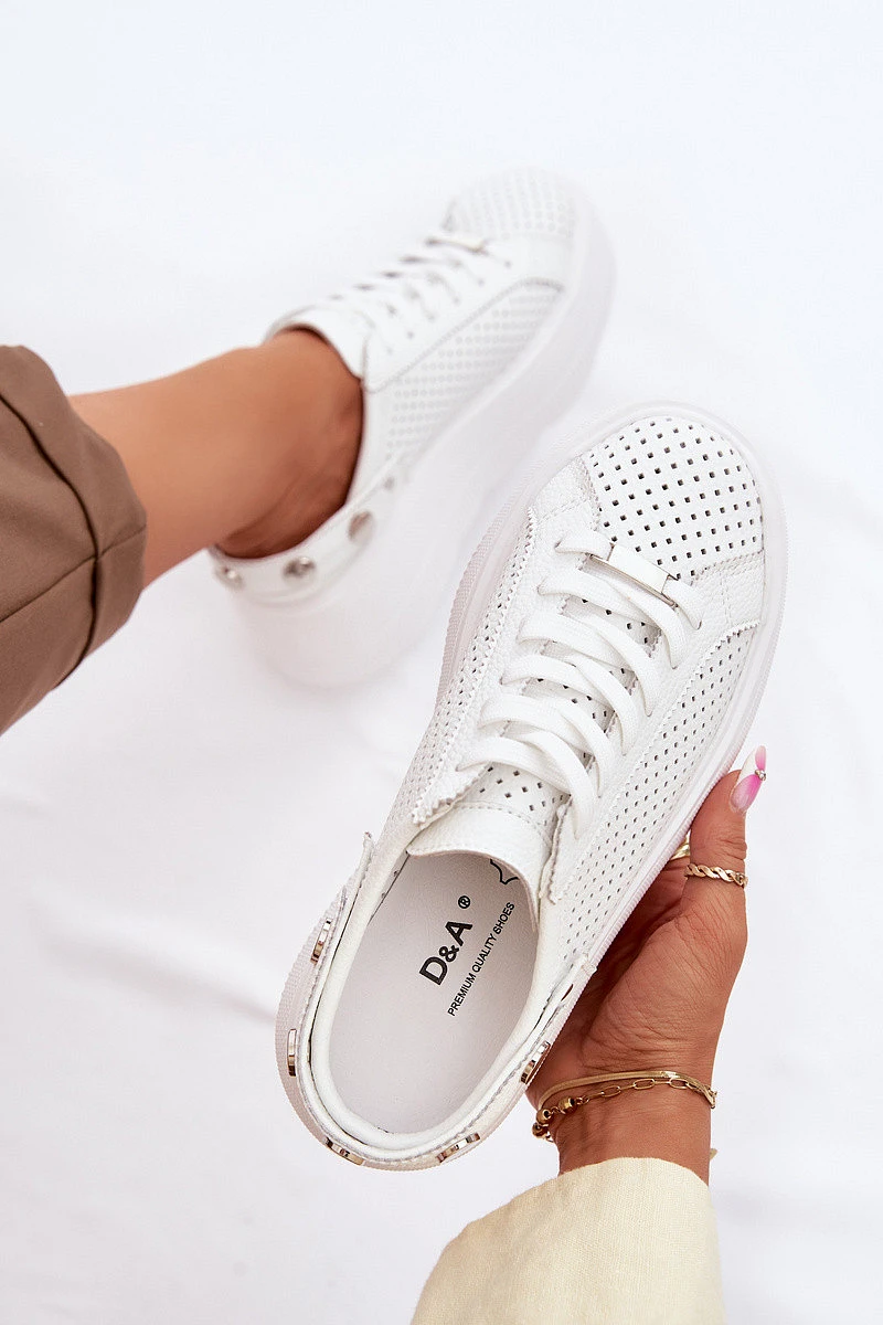 Kožené Ažurové Dámské Tenisky Na Platformě S Páskem Na Patě D&A LR61-7088 Bílé