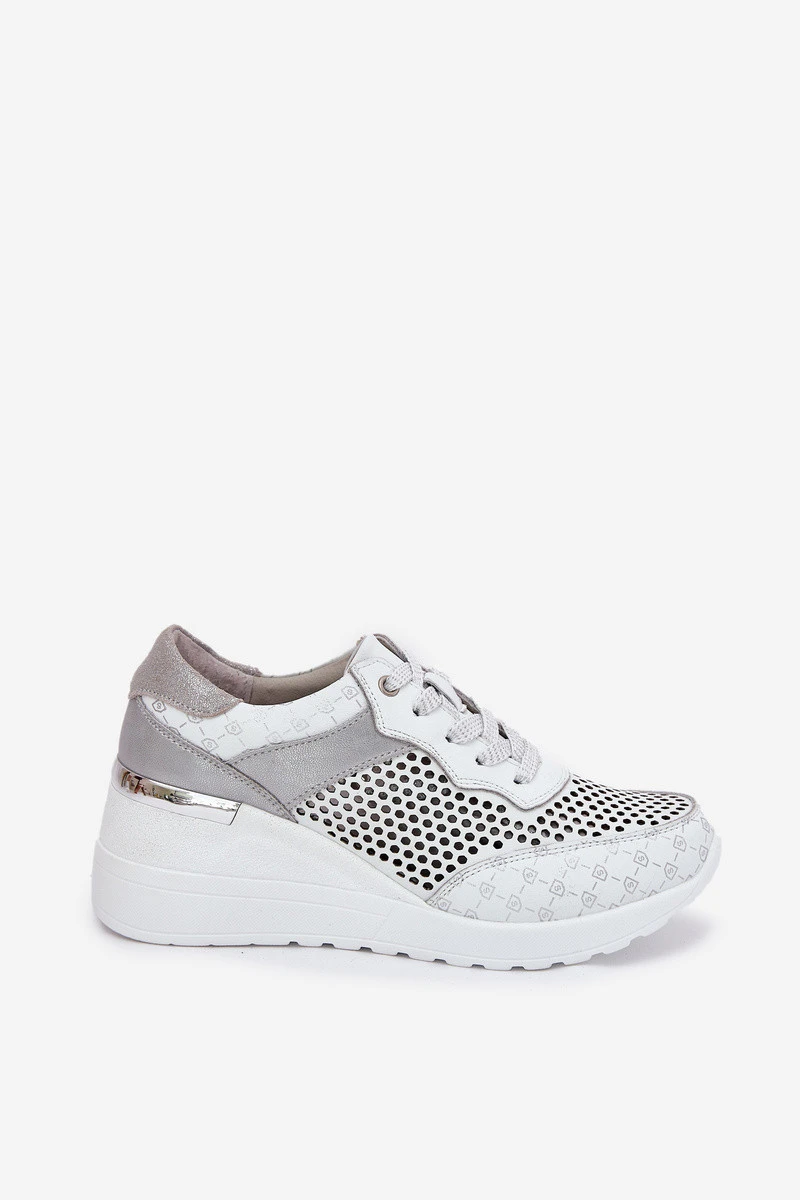 Kožené Ažurové Sportovní Boty Sneakers Na Klínu Bílé model 21691047 - S.Barski