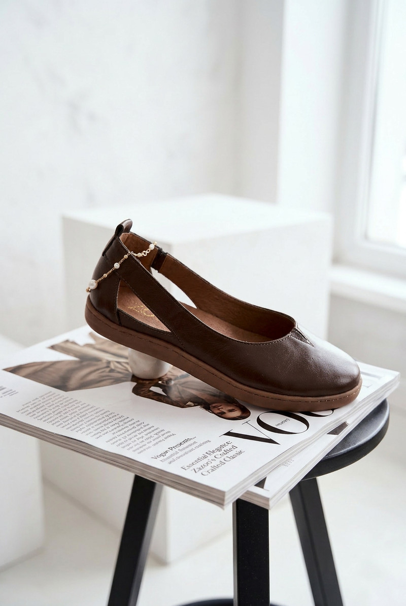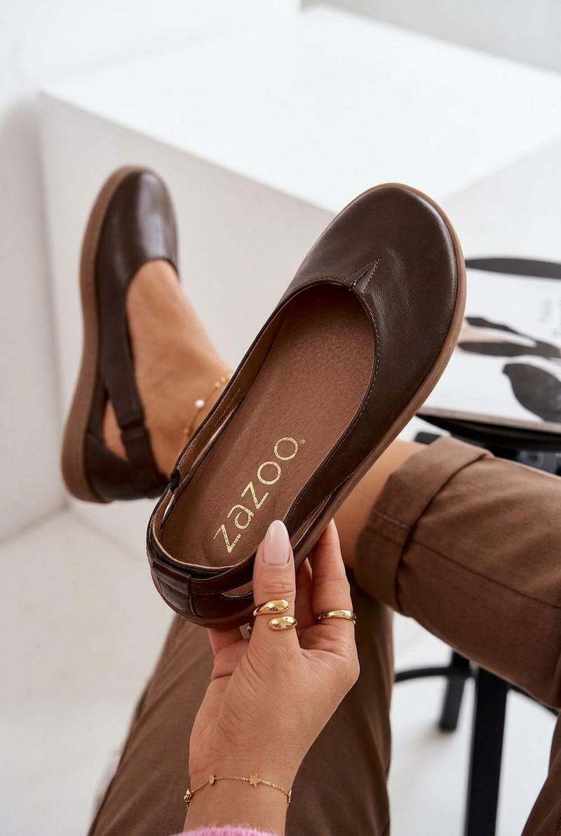 Kožené baleríny Barefoot model 22073665 Čokoládové - Zazoo