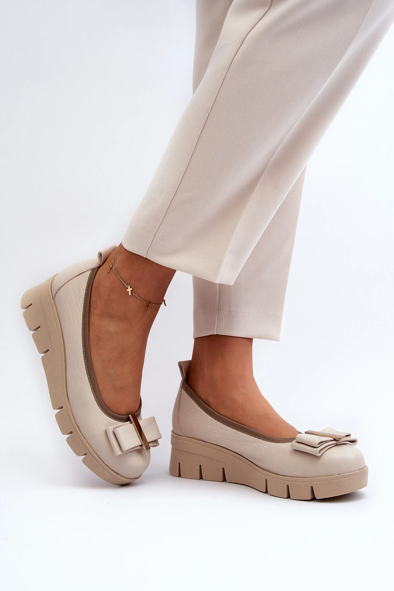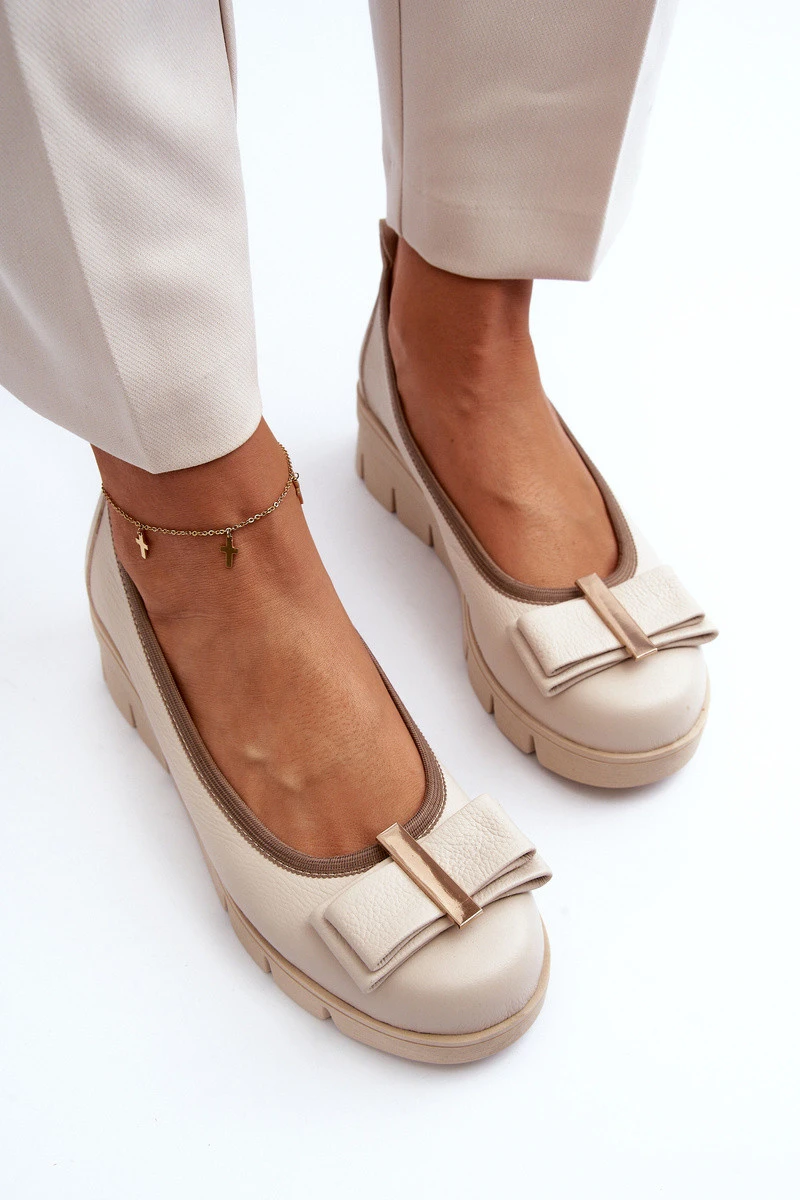 Kožené baleríny na platformě s ozdobou krémové Lewski model 21644614 - Boto