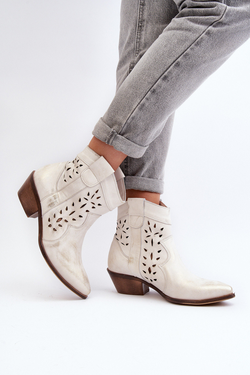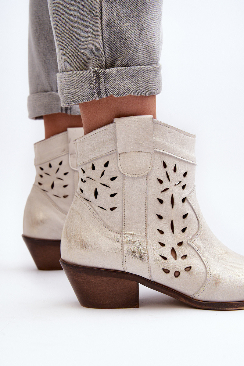 Kožené botky na nízkém podpatku se vzorem 2870 Zazoo stříbrné
