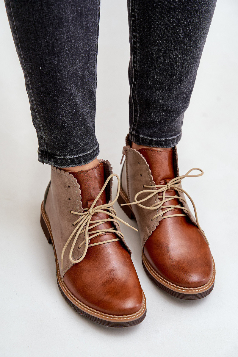 Kožené Botky Na Plochém Podpatku Hnědé Zazoo model 21679956 - NOBO