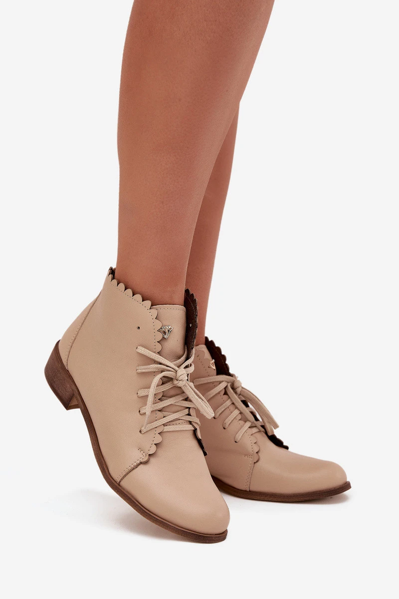 Kožené Boty Na Plochém Podpatku Béžové Zazoo 2964