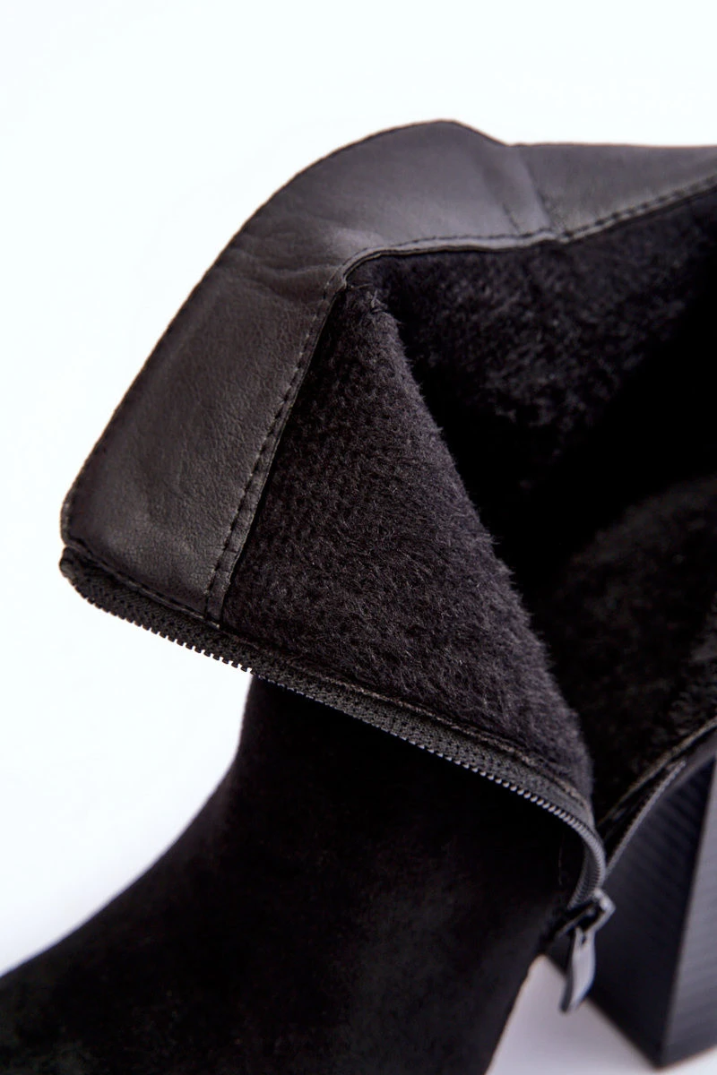 Boty na vysokém podpatku ve tvaru sloupku. Vyrobeno z eko semiše. Zapíná se na zip na vnitřní straně paty. Špička je zesílená. Tento model je zateplený obuvnickou dekou. Musíš je mít! Při výběru velikosti se řiďte tabulkou velikostí.