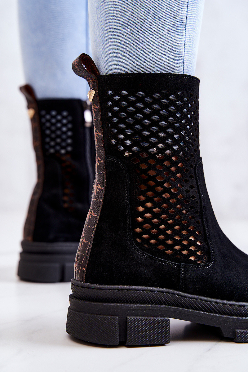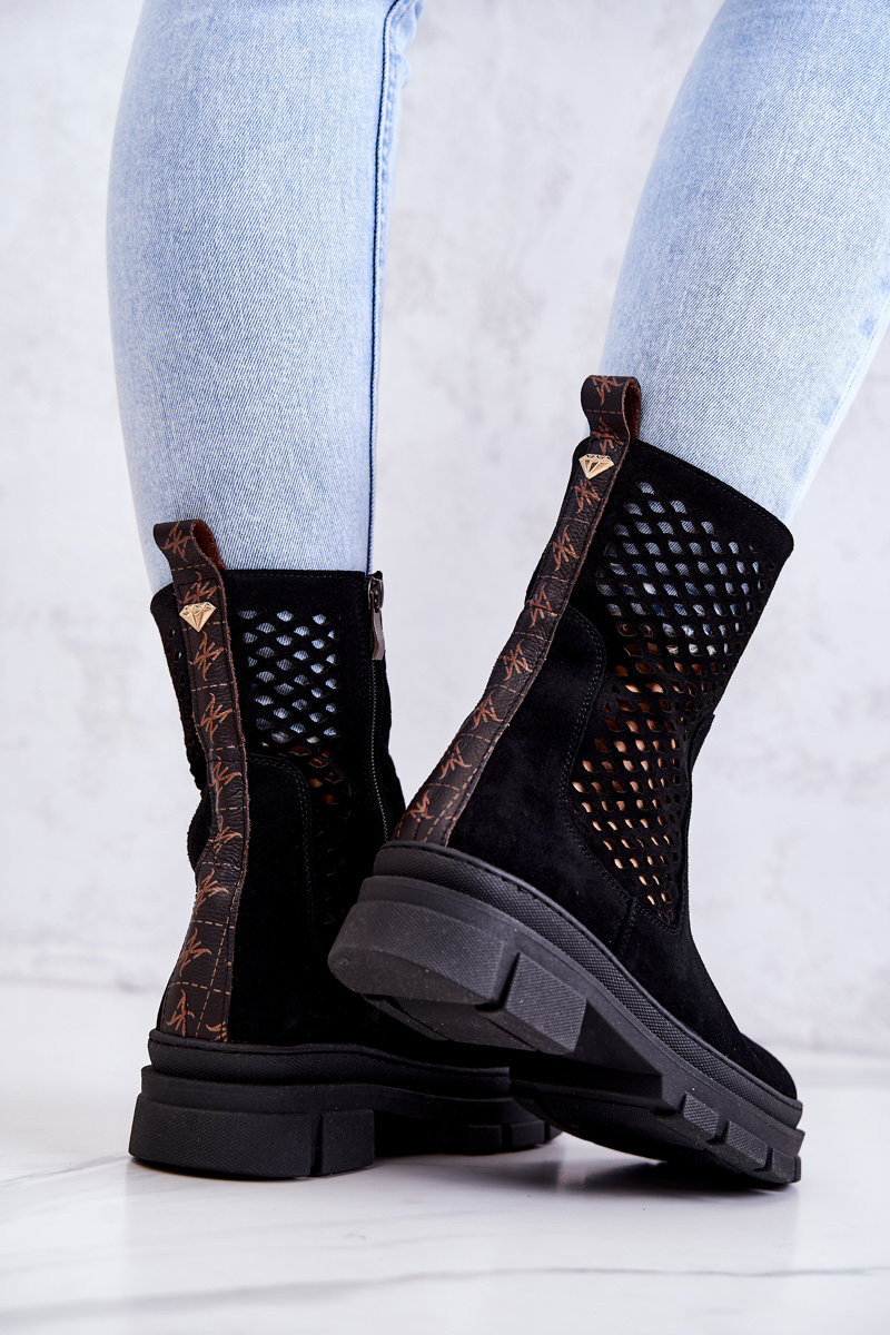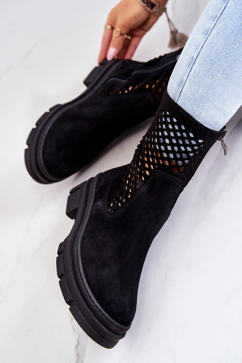 Dámské boty Nicole jsou vyrobeny výhradně z přírodní kůže. Příjemný a pohodlný semiš poskytne výjimečný komfort. Zapínání na zip. Protiskluzová podrážka v dělnickém stylu zajistí stabilitu při každém kroku. Svršek má prolamovaný vzor. Určitě se podívejte na naše další modely Nicole! Při výběru velikosti použijte tabulku velikostí.
