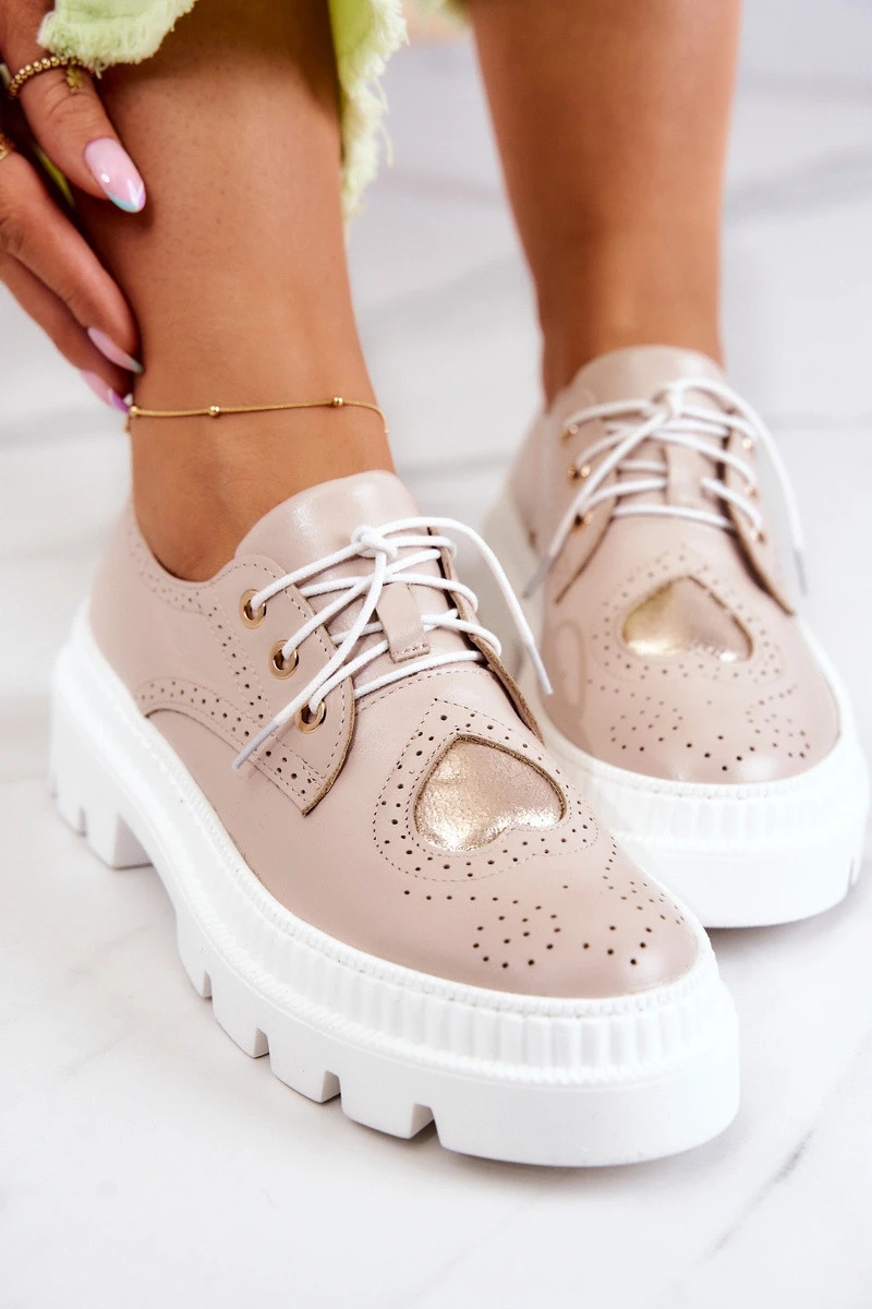 Tento model ukradl srdce nejednomu fanouškovi módních trendů! Boty jsou vyrobeny z přírodní kůže s jemnou perforací. Podpatek je vyztužený. Klasické vázání umožňuje správné přizpůsobení boty šířce nohy. Okouzlující ozdobné srdce dodává botám mimořádný vzhled. Měkká kožená stélka a plochý podpatek zajistí pohodlí po celý den! Při výběru velikosti použijte tabulku velikostí.
