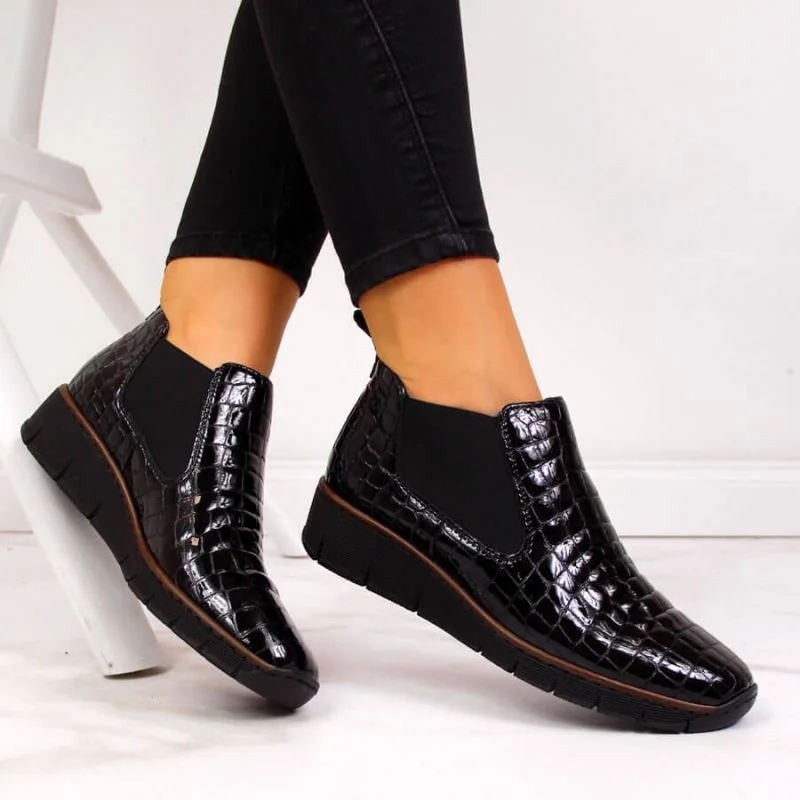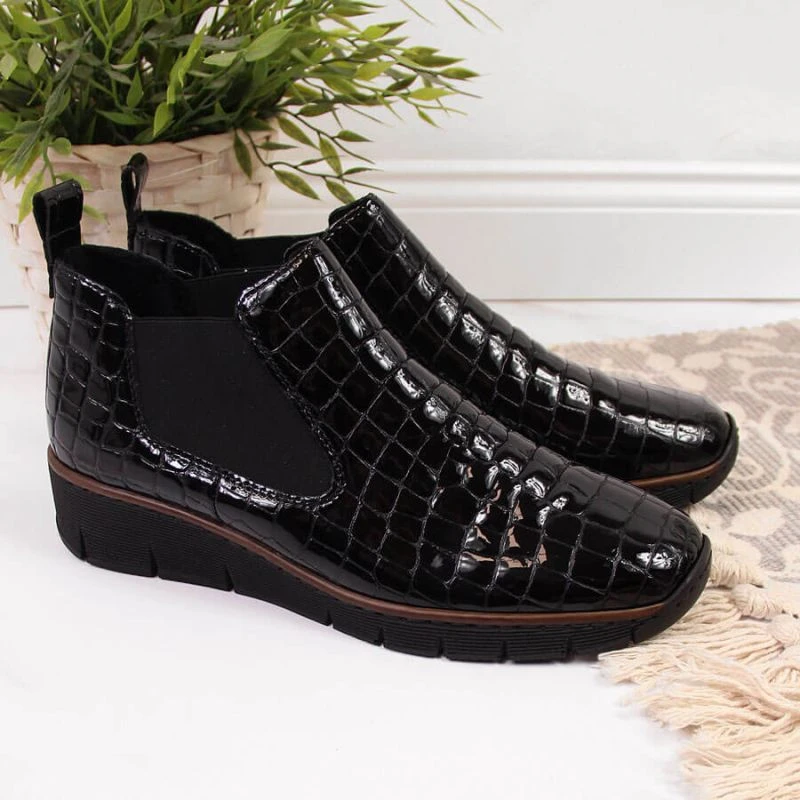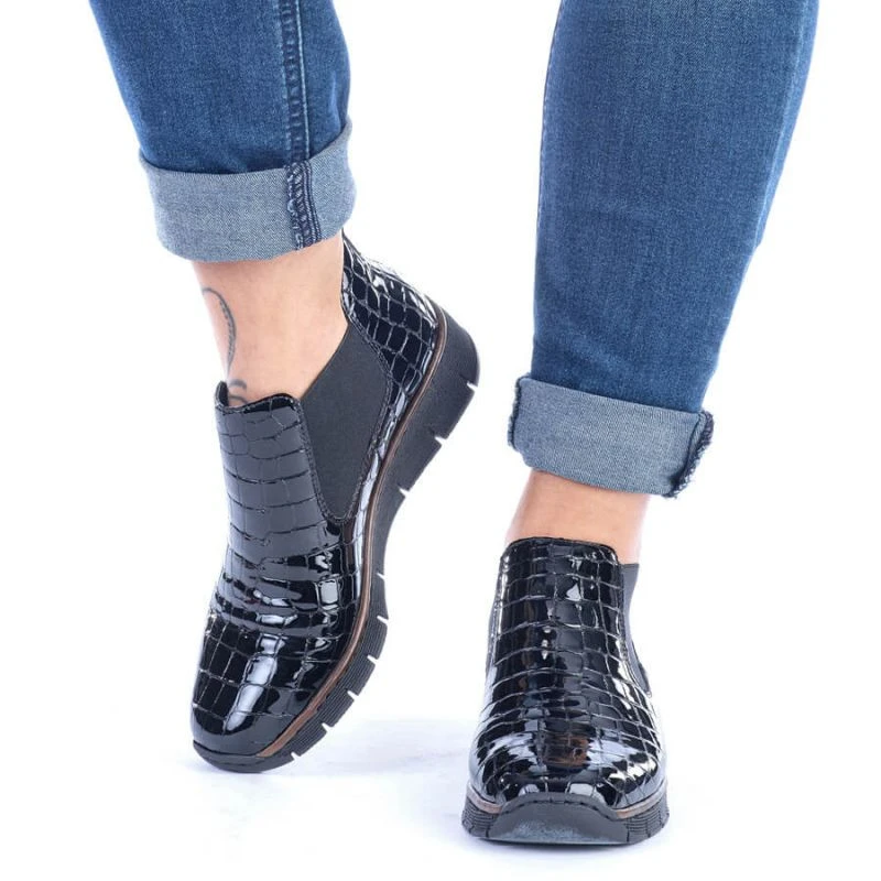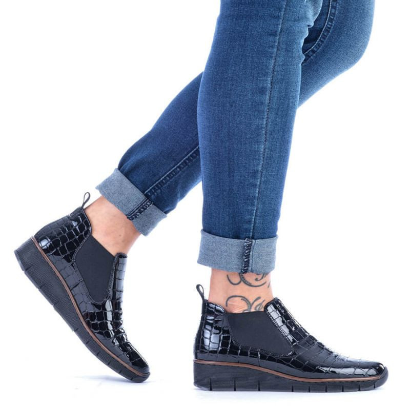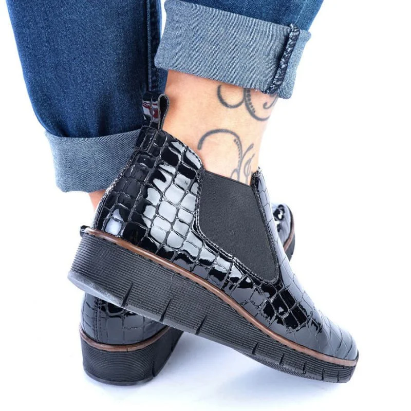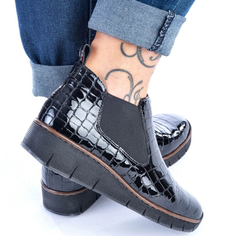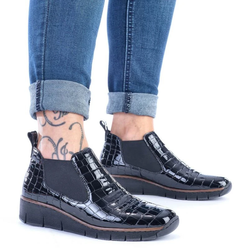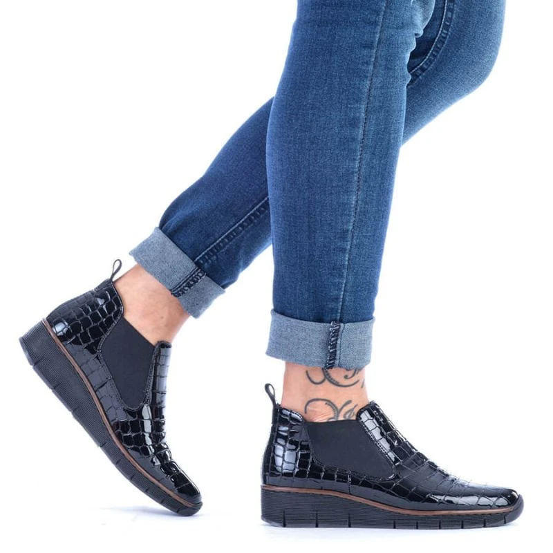 Kožené boty z hadí kůže Rieker W R474 černé