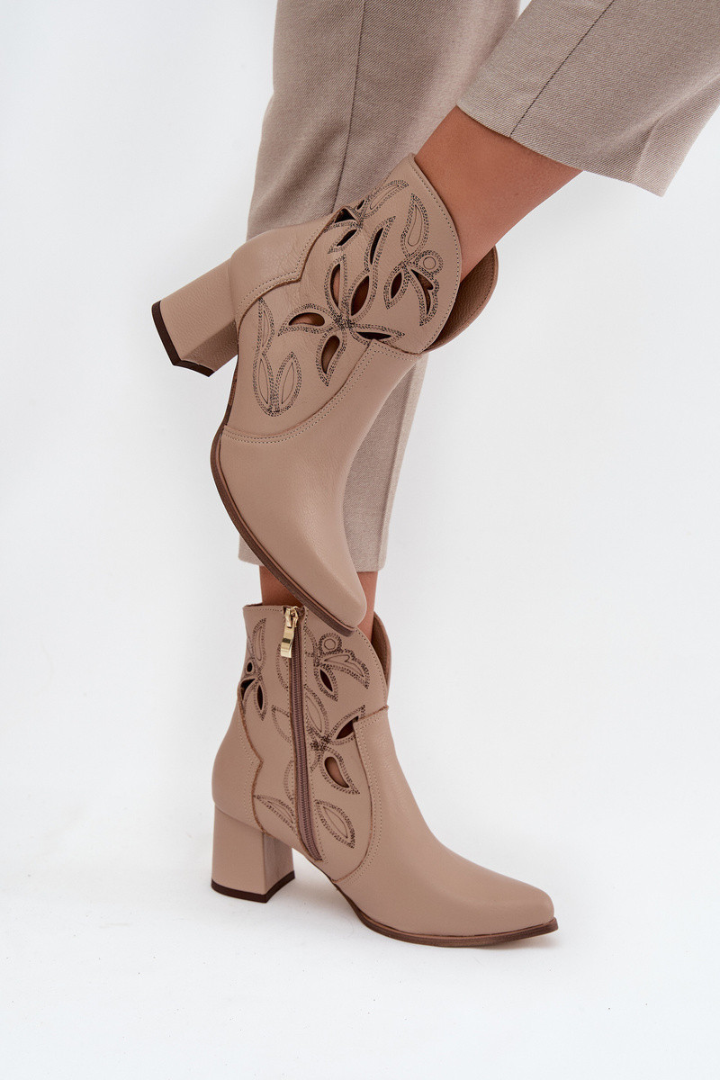 Kožené dámenské vzorované boty na podpatku Zazoo 3647 světle béžové