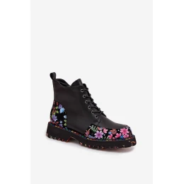 Kožené dámské botky Artiker zateplené – černé s květinovou výšivkou