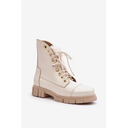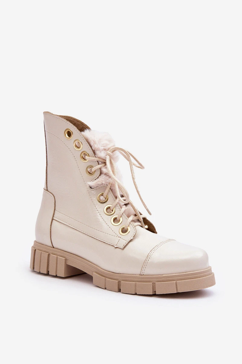 Kožené Dámské Botky S Kožešinou Jasnobežové Lewski 3296