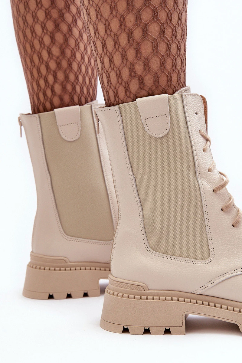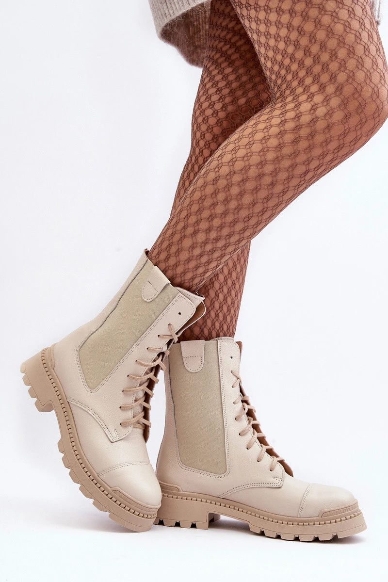 Kožené Dámské Botky Workery Šněrovací Světle Béžové Nicole model 21636175 - Boto