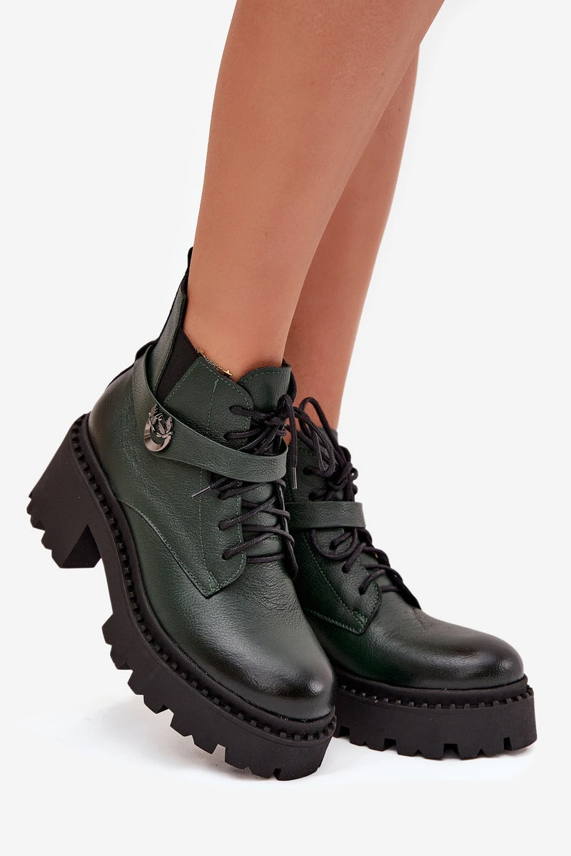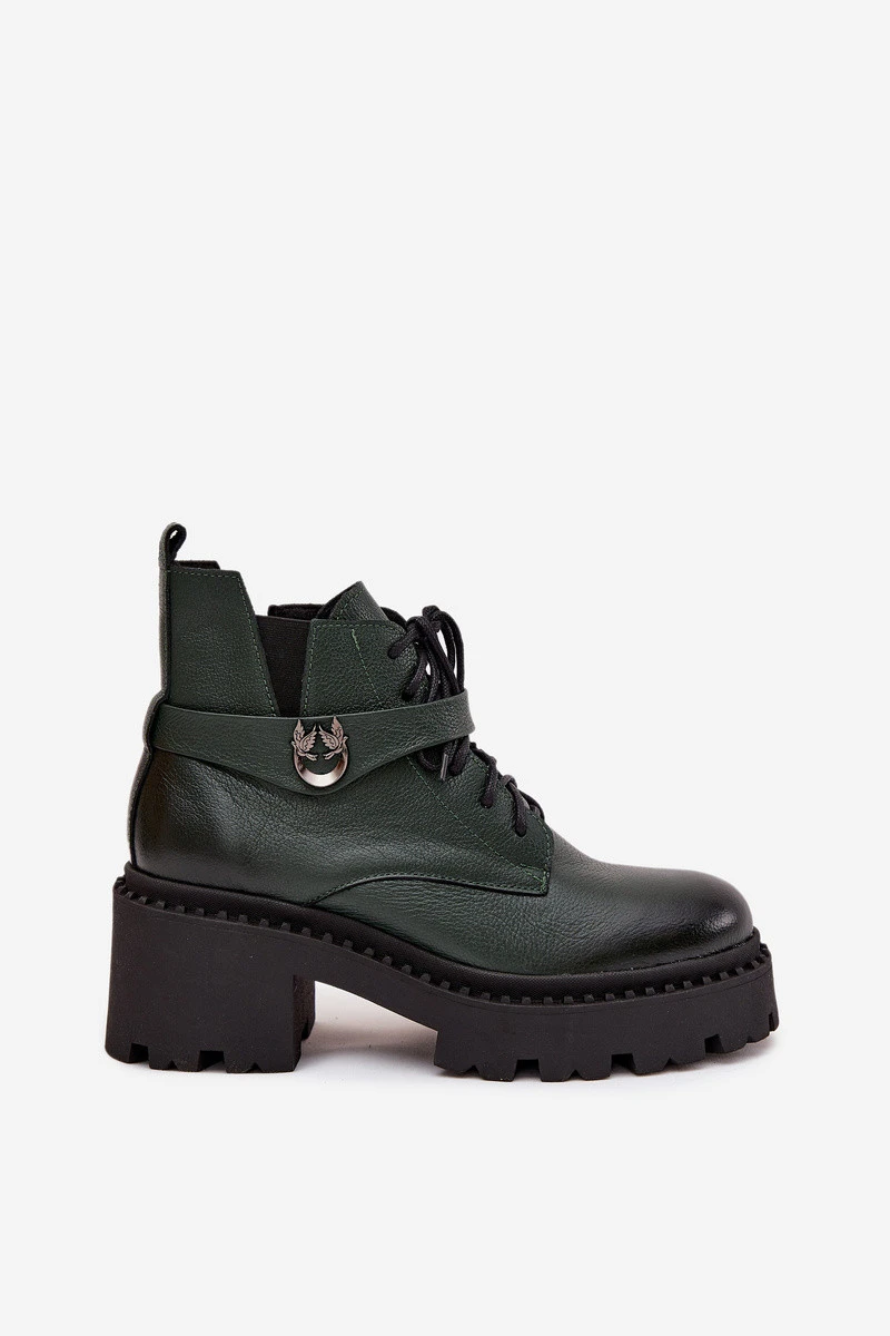 Kožené dámské boty na klínku s ozdobným páskem zateplené model 21710535 tmavě zelené - Zazoo