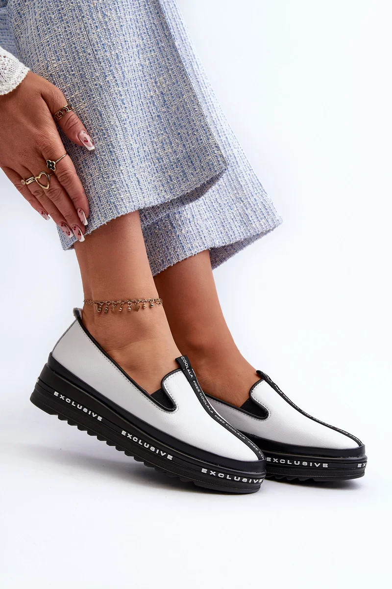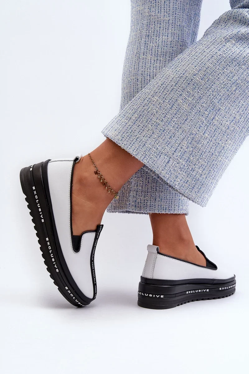 Dámské slip-on boty S.Barski vyrobené z přírodní kůže jsou kombinací elegance a pohodlí. Namontované na platformě. Zdobené nápisy. Měkká komfortní stélka. Zaoblené prsty. Tento extrémně stylový model jistě doplní mnoho stylů! Při výběru velikosti se řiďte tabulkou velikostí.