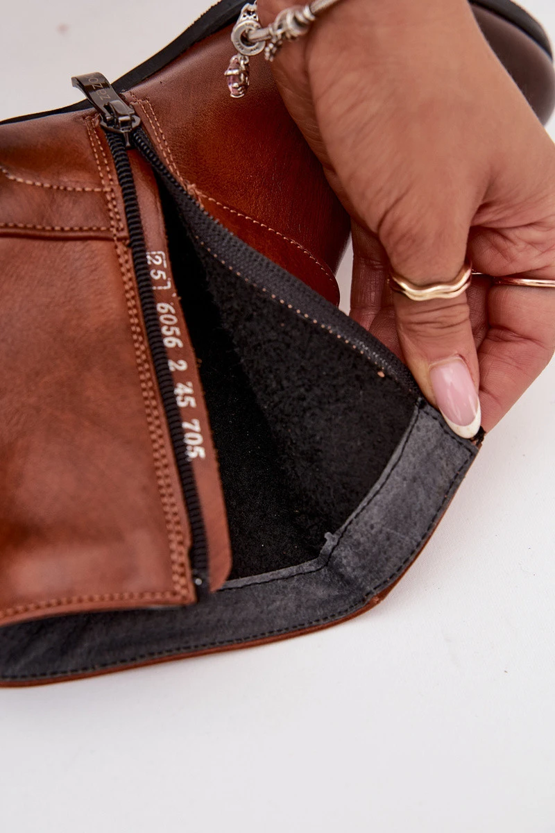 Kožené dámské boty na podpatku s přezkou model 21710521 hnědé - Zazoo