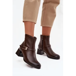 Kožené dámské boty na podpatku s přezkou model 21744793 hnědé - Zazoo