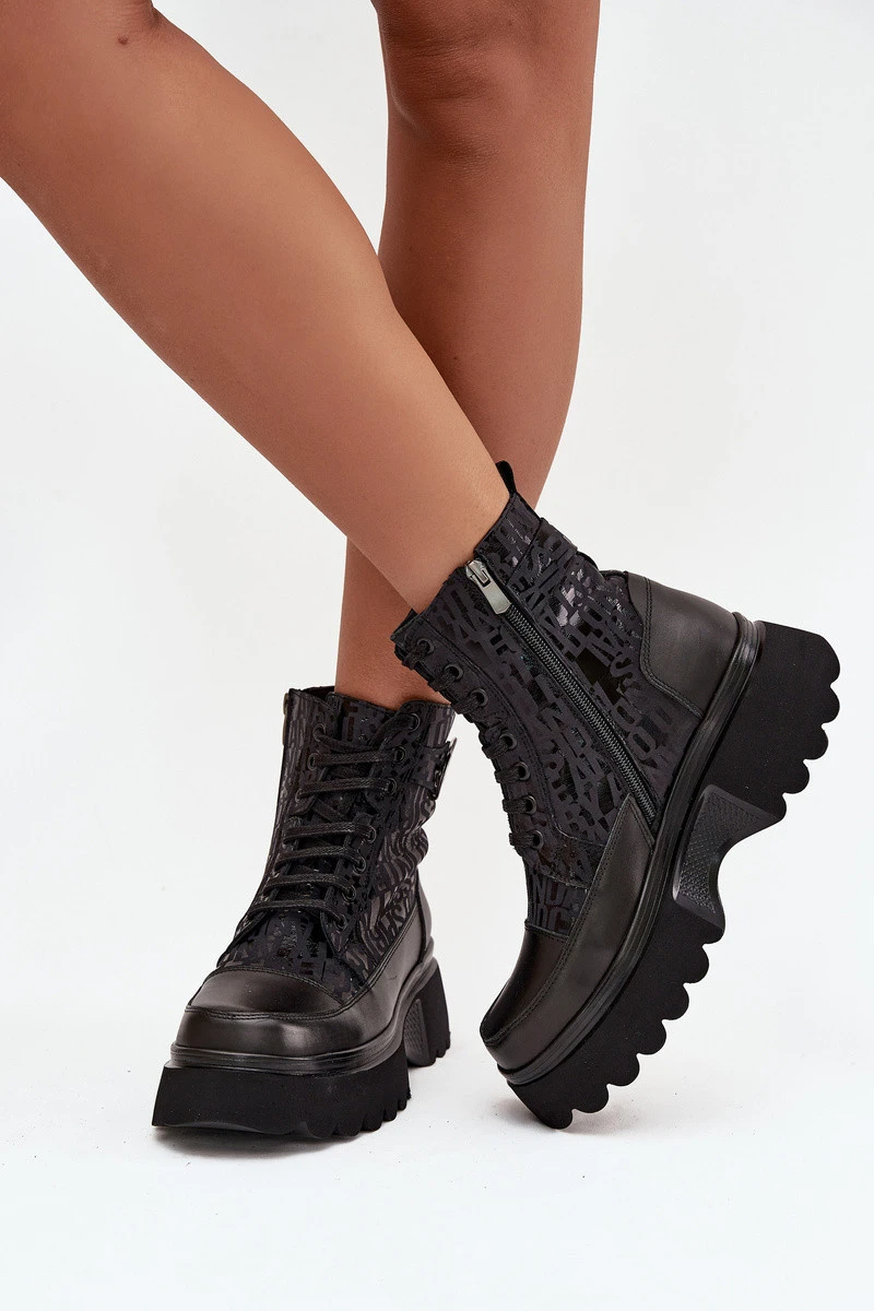 Kožené dámské kotníčková na platformě s nápisy a ozdobným detailem Artiker 57C2273 Černé