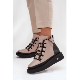 Kožené dámské kotníčkové boty na platformě s vyhříváním Artiker 55C0884 Béžové