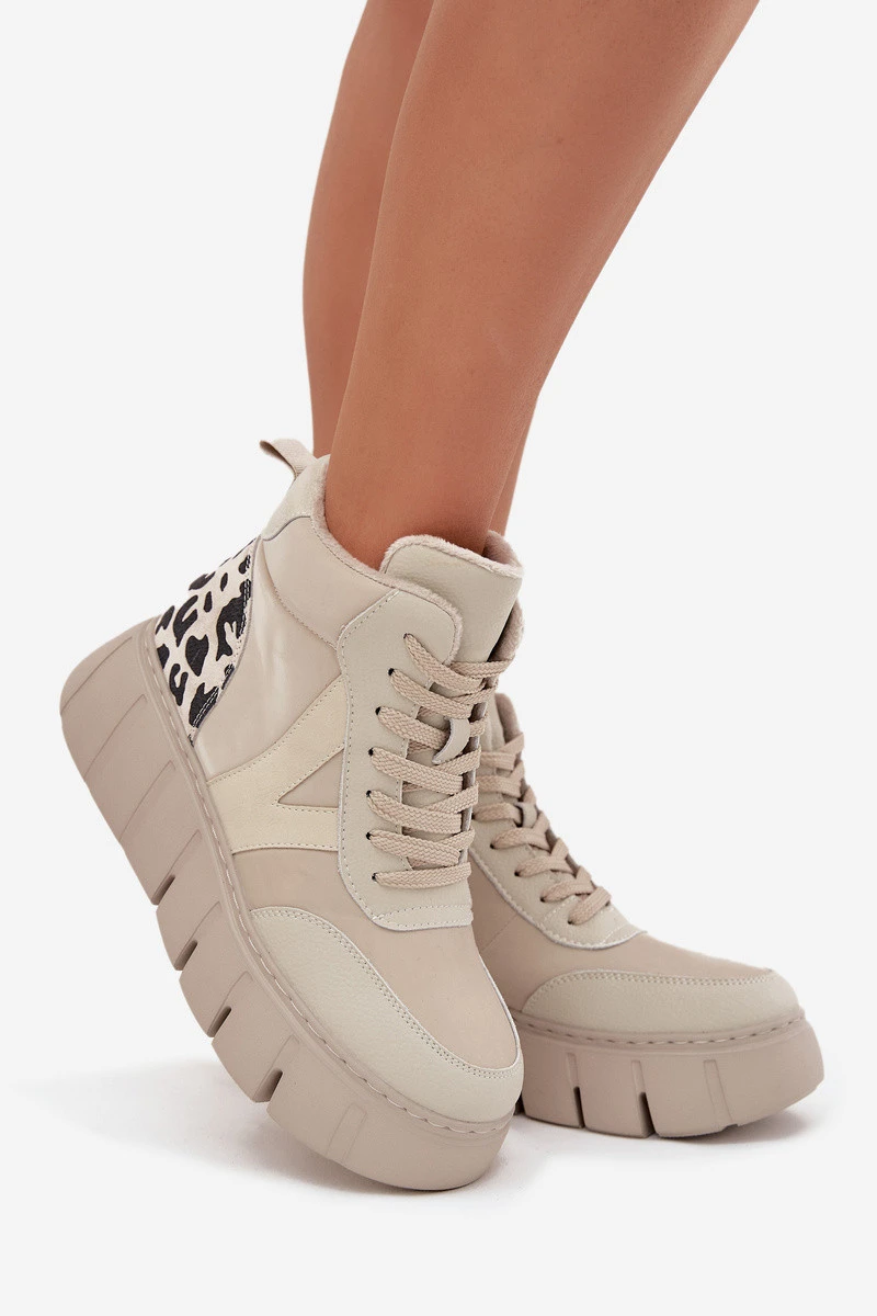 Kožené dámské kotníčkové boty na platformě vyhřívané Vinceza 66838 béžové