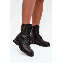 Kožené dámské kotníkové boty na plochém podpatku s ozdobou vyhřívané model 21712473 Černé - Artiker