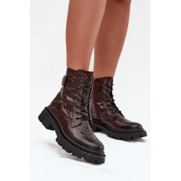 Kožené dámské kotníkové boty s efektem a přezkou Čokoládové model 21712438 - Artiker