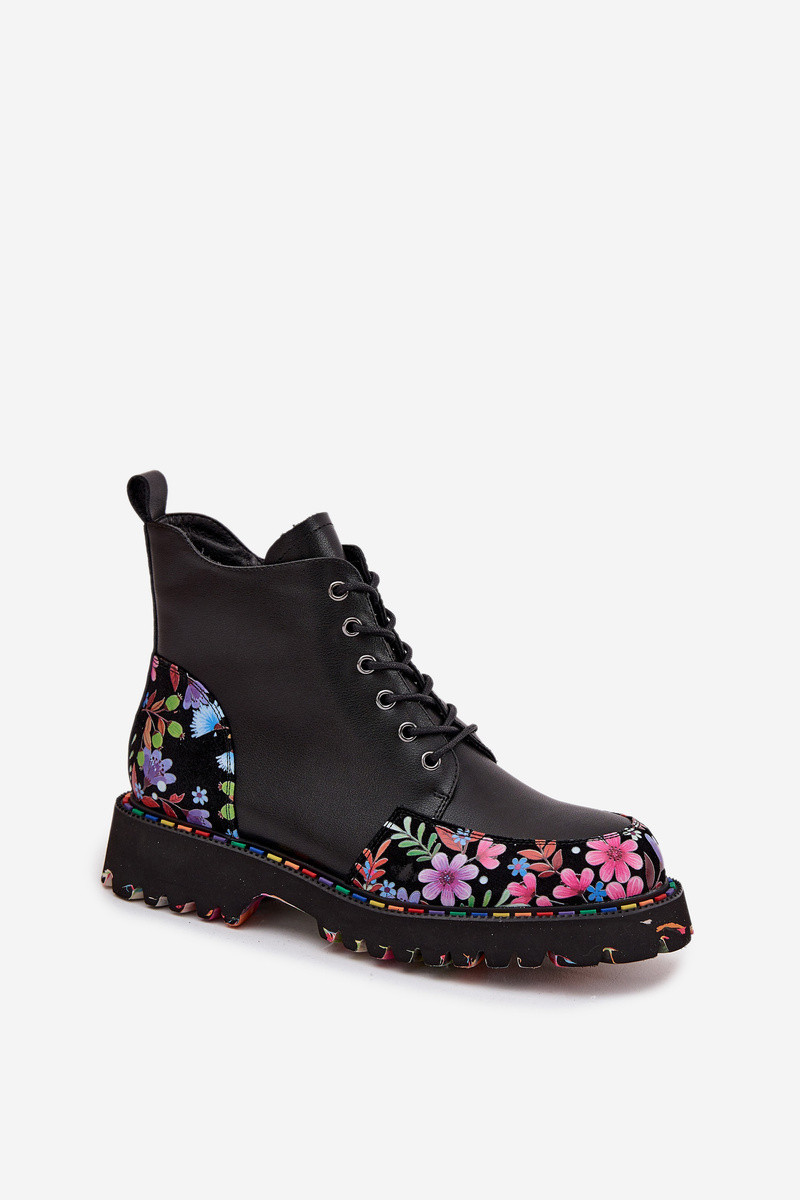 Kožené dámské kotníkové boty s květinami zateplené Artiker 57C0180 Černé