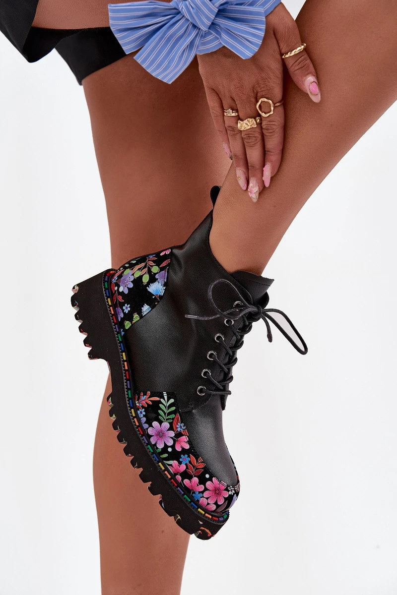 Dámské kotníkové boty od značky Artiker jsou návrh, který kombinuje pohodlí s jedinečným, ženským stylem. Vyrobené z vysoce kvalitní přírodní kůže, vypadají elegantně a jsou odolné, zajišťující pohodlí při každodenním nošení. Model spojuje klasické šněrování s praktickým zipem, což umožňuje dokonalé přizpůsobení tvaru nohy a usnadňuje obouvání a svlékání. Jemné zateplení zajišťuje, že boty jsou vhodné i na chladnější dny, poskytují příjemné teplo. Celkový vzhled doplňuje jemný motiv barevných květin, který dodává výjimečný šarm a originální charakter, čímž jsou skvělým doplňkem jak pro volnočasové, tak i ženské stylizace. Při výběru velikosti se prosím řiďte tabulkou velikostí. Při výběru velikosti se řiďte tabulkou velikostí.