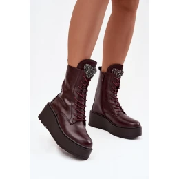 Kožené dámské kotníkové boty s ozdobou vyhřívané bordó Ulrika