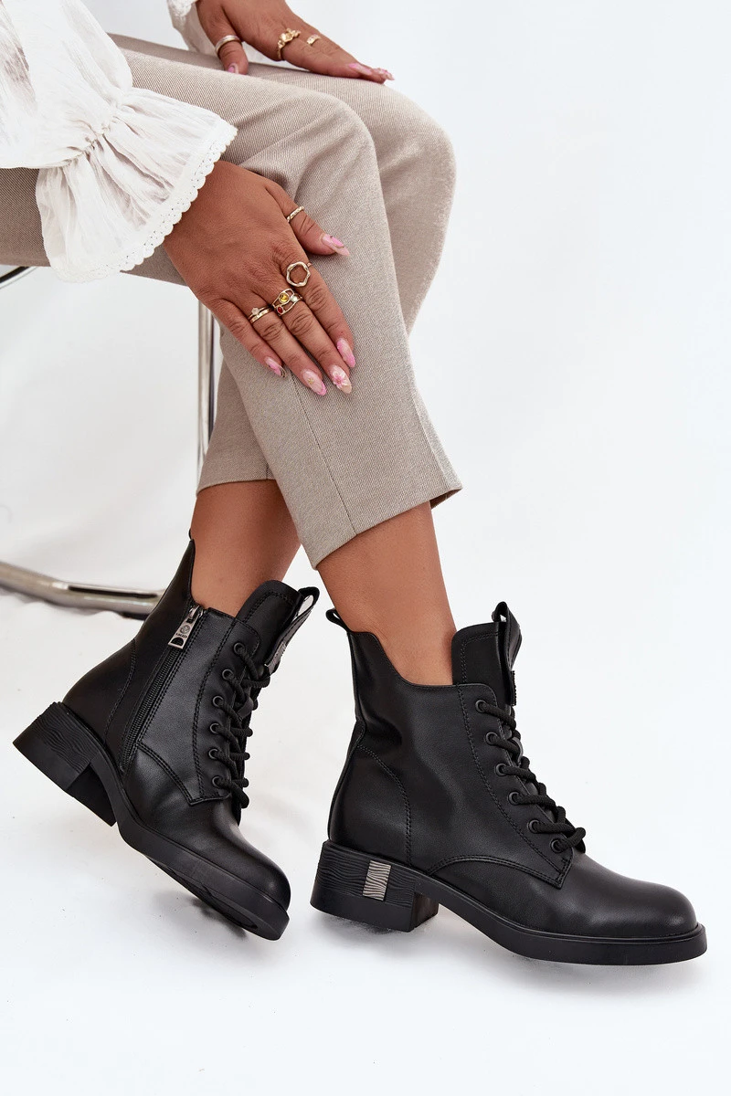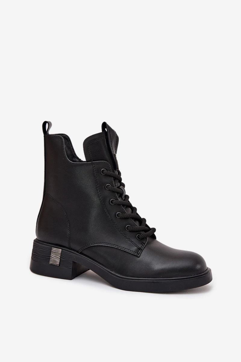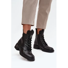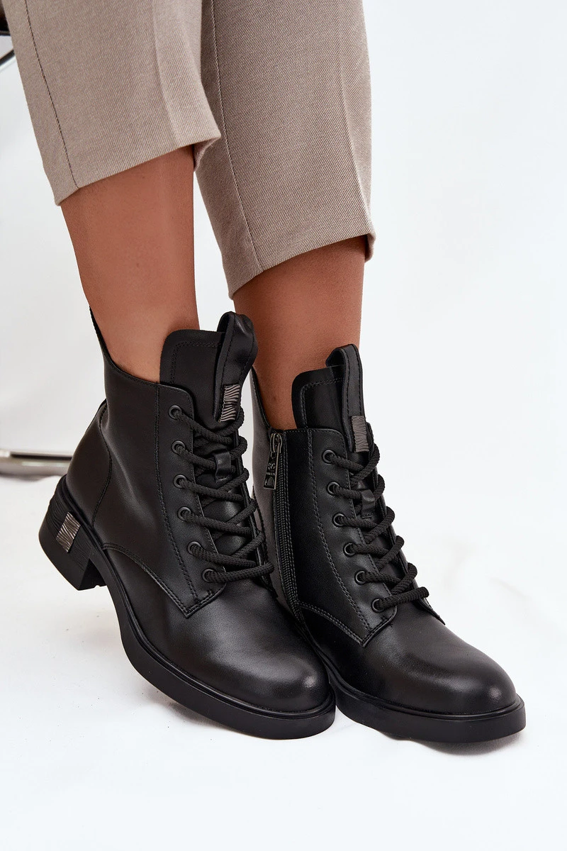 Přidání recenze k Kožené dámské kozačky na nízkém podpatku model 21713393 Černé - VINCEZA