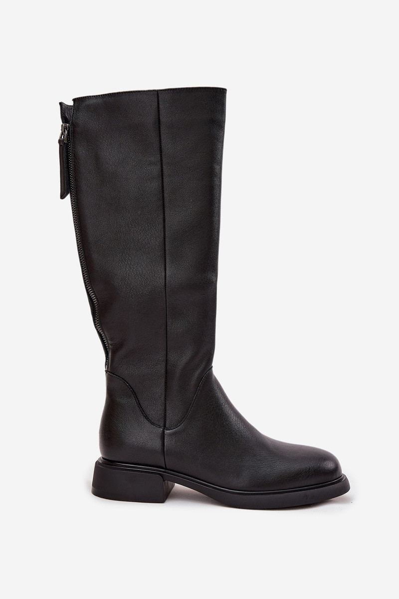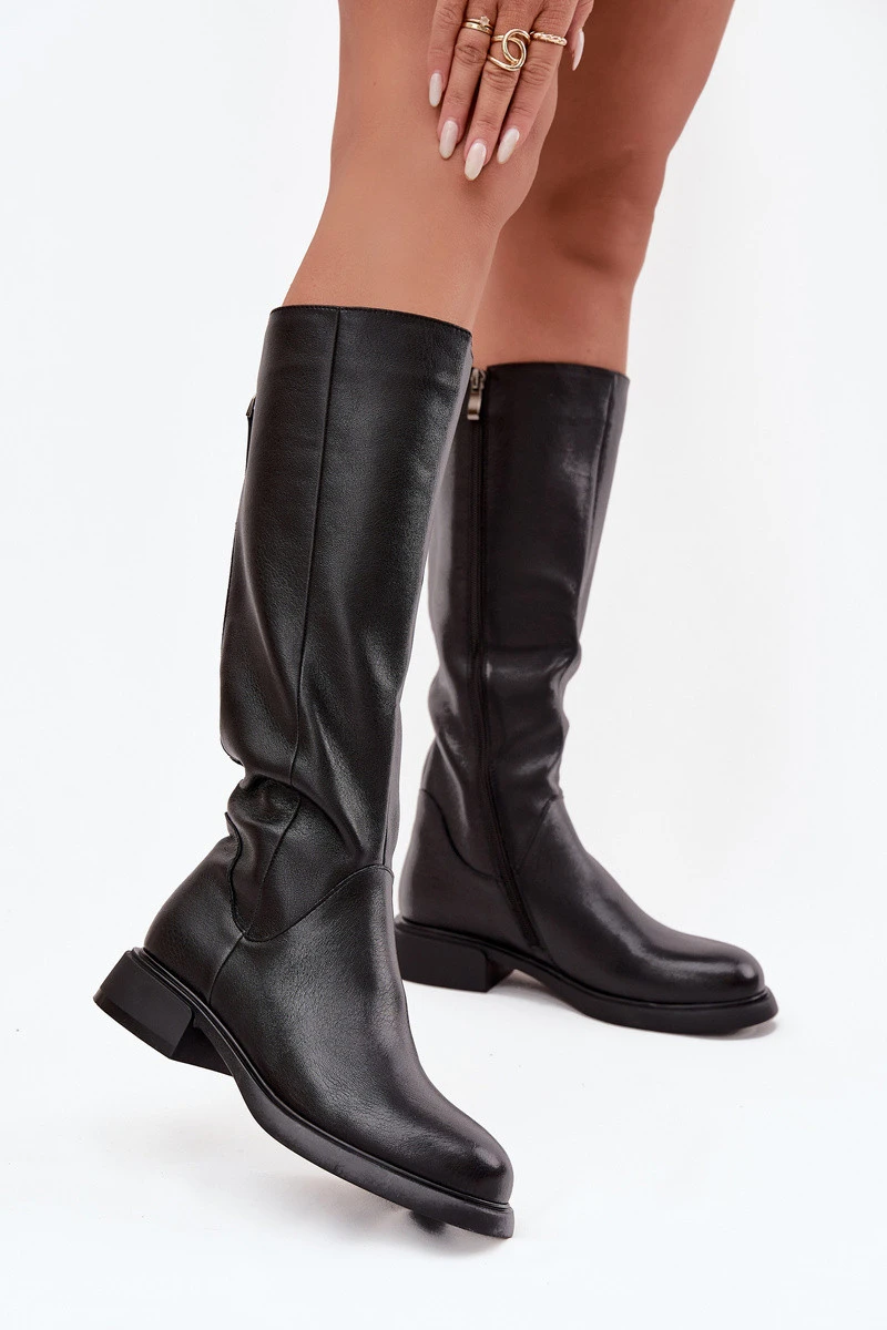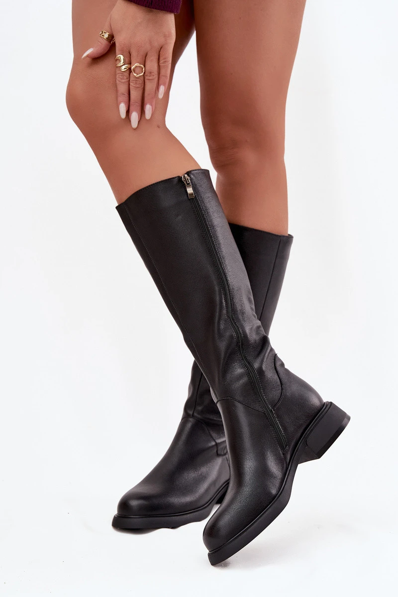 Kožené dámské kozačky na nízkém podpatku s D&A Černé model 21715489 - S.Barski
