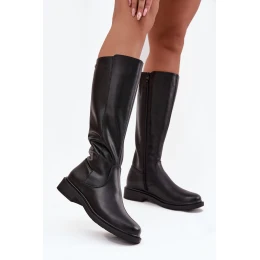 Kožené dámské kozačky s podšívkou na nízkém podpatku Sergio Leone KZ25600-S Černé