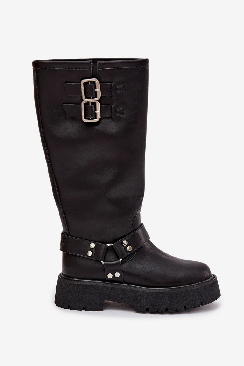 Kožené dámské kozačky s přezkami zateplené Big Star model 21758949 černé - Big Star Shoes