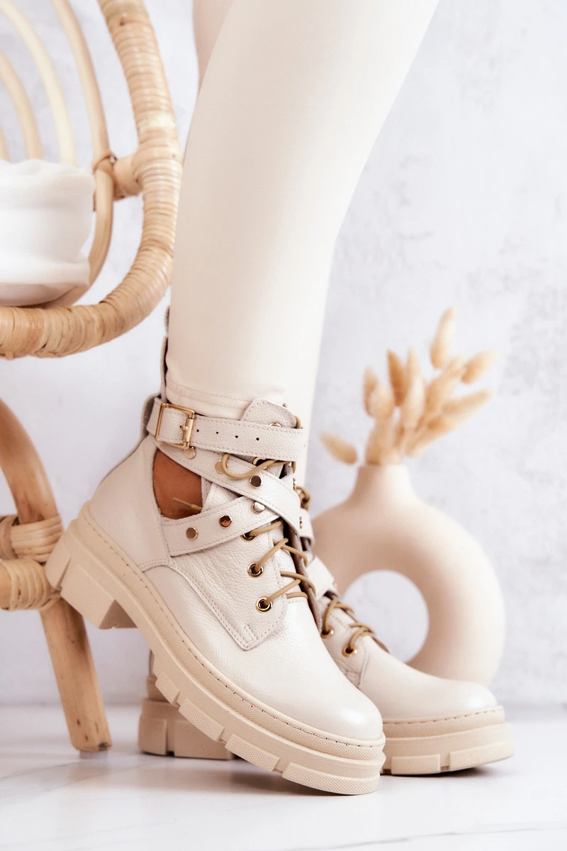 Kožené dámské kozačky s výřezy Světle béžová model 21576609 - Boto