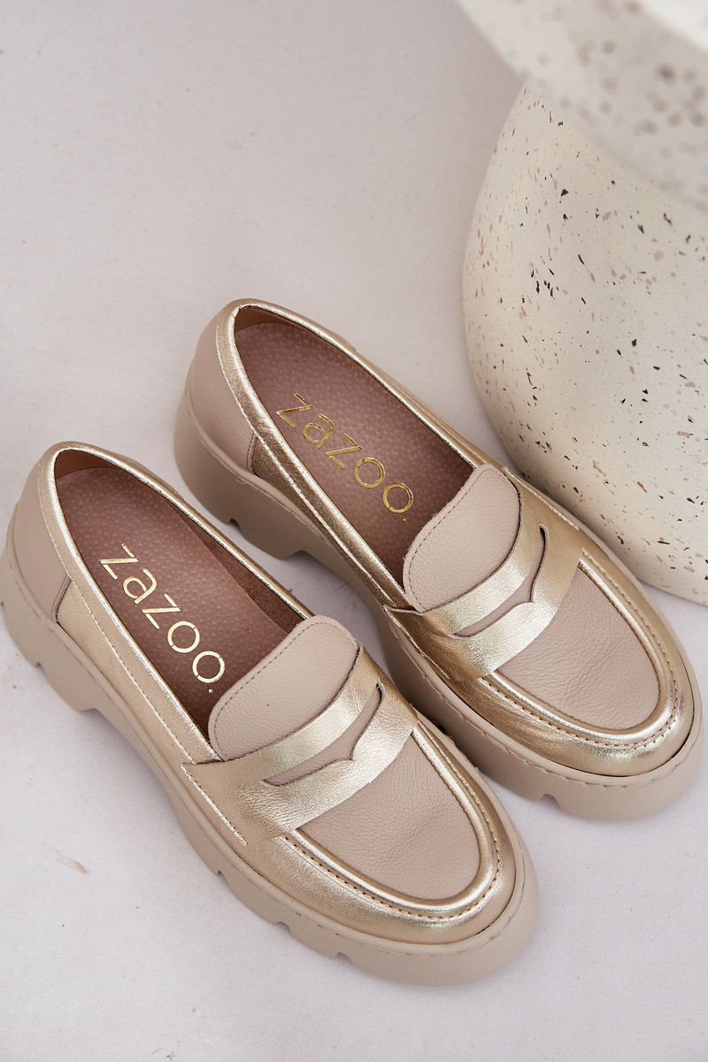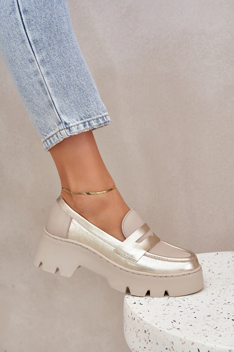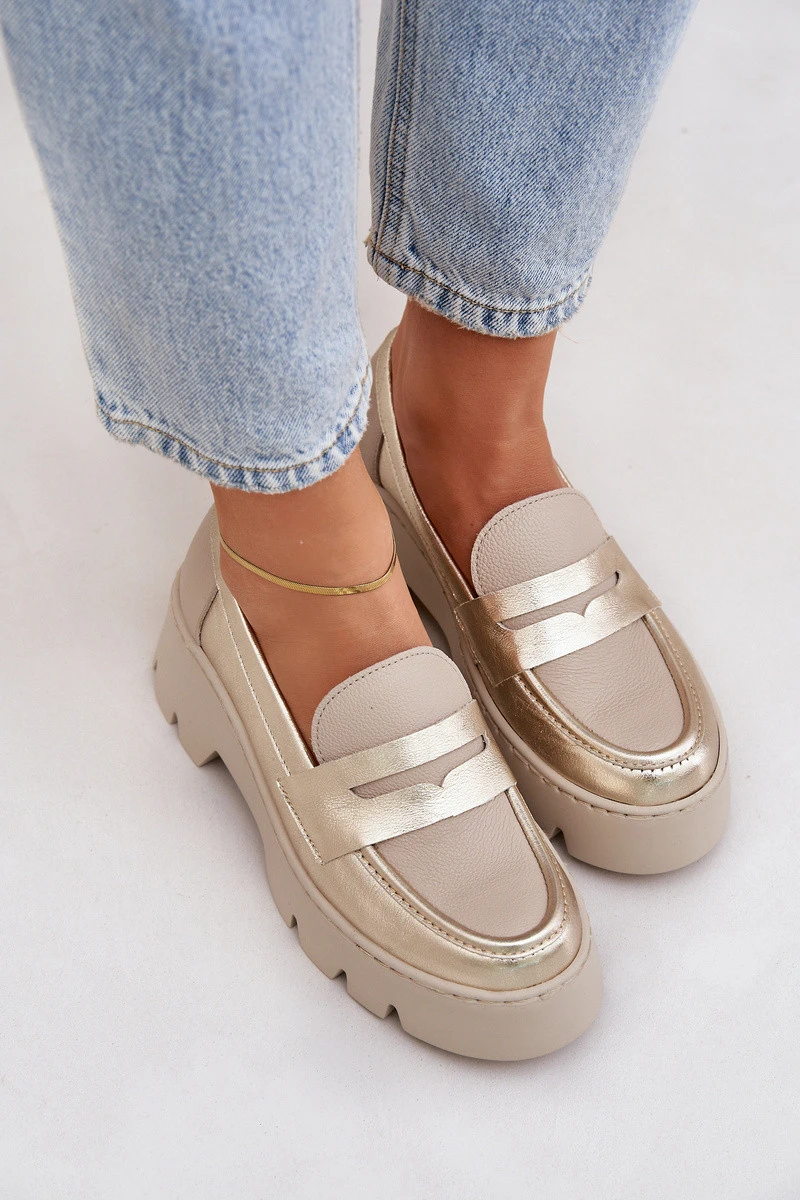 Kožené Dámské Mokasíny Na Platformě A Plochém Podpatku Panteří Zazoo 20191 Zlaté