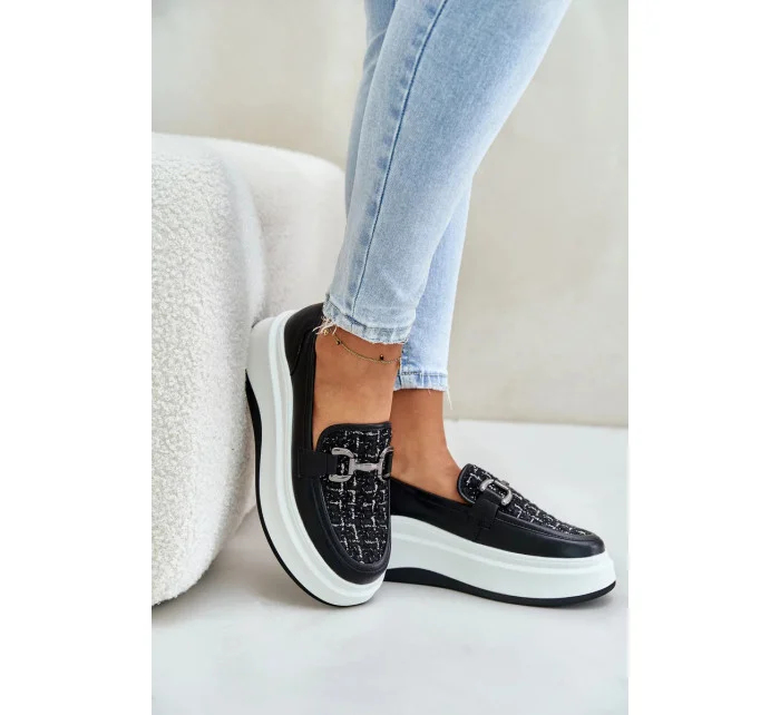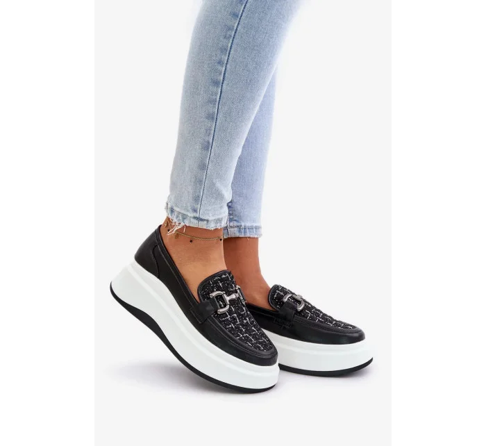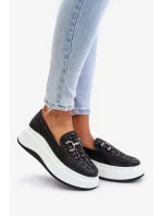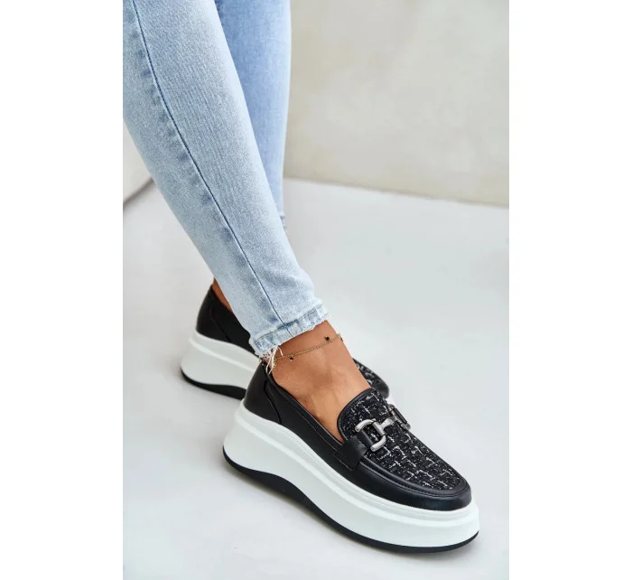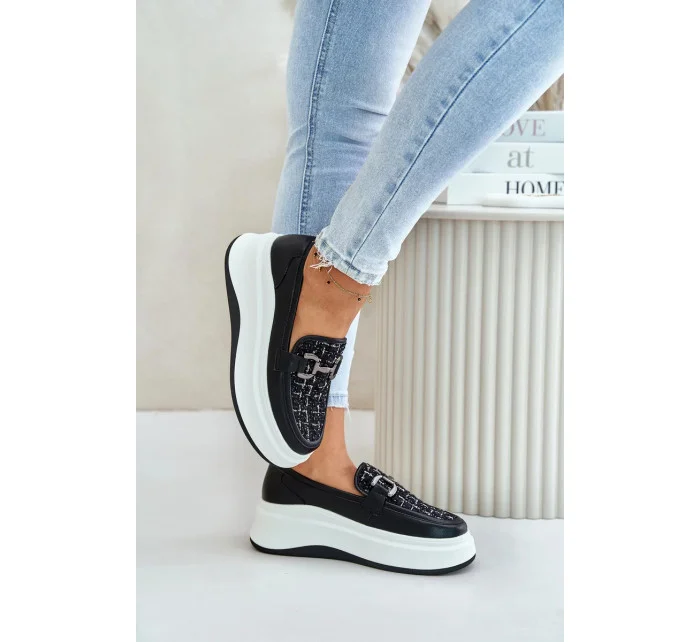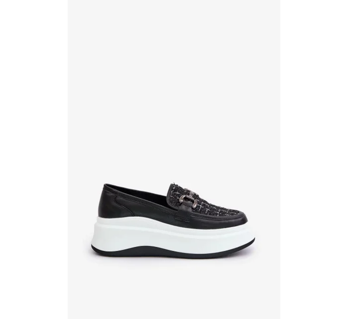 Kožené Dámské Mokasíny Na Platformě S Ozdobou Vinceza Černé