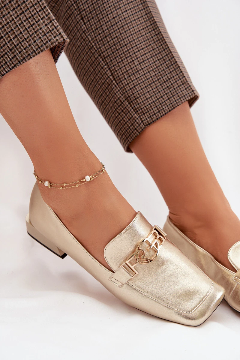 Kožené dámské mokasiny s ozdobným detailem D&A CR61-3125 zlaté