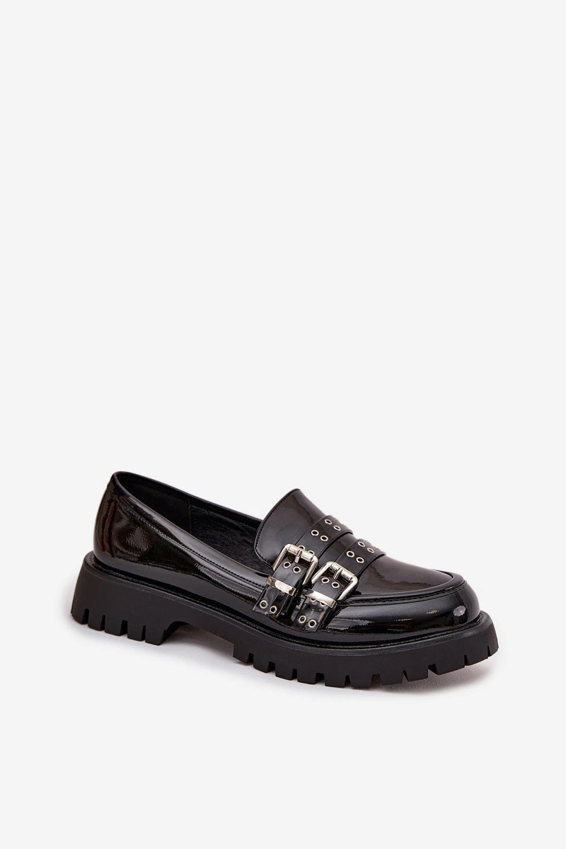 Kožené dámské mokasíny s pásky a přezkami Černé model 21744765 - Boto