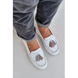 Přidání recenze k Kožené dámské mokasíny s třásněmi na platformě a klínu bílé Eleazetta