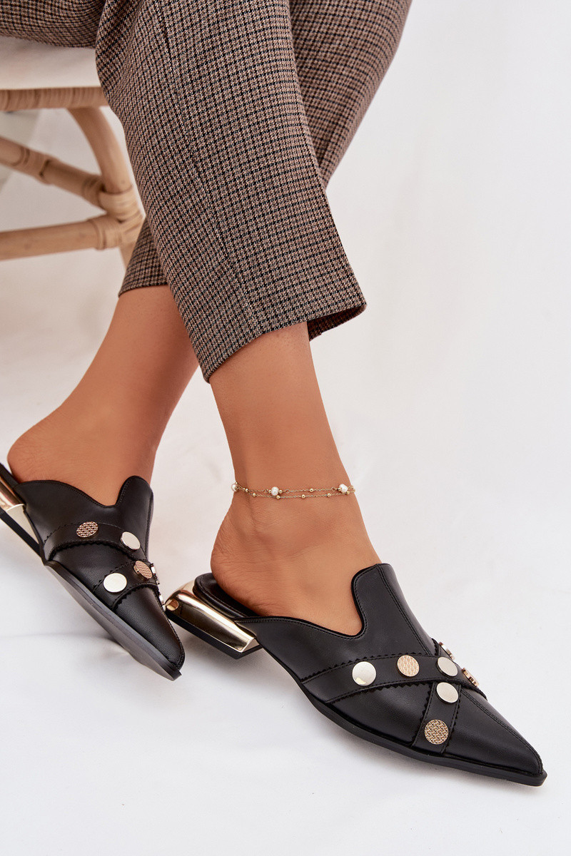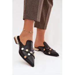 Kožené dámské nazouváky s ozdobnými pásky D&A model 22031828 Černé - S.Barski